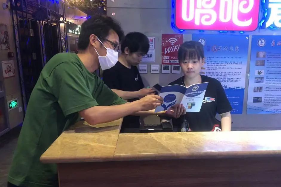工作人员走进辖区餐饮行业、KTV等对负责人及员工普及禁毒知识,并发放禁毒教育读本,要求各单位做好禁毒宣传。