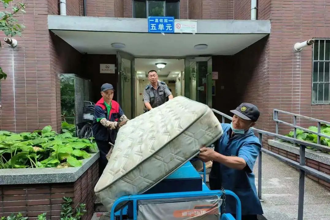 大家头顶炎炎烈日,穿巷爬楼、肩扛手提,将废旧家具、纸箱、“僵尸车”等统一装车清运,并号召更多居民自觉行动起来,及时清理自家堆物,共同营造安全有序的公共环境。