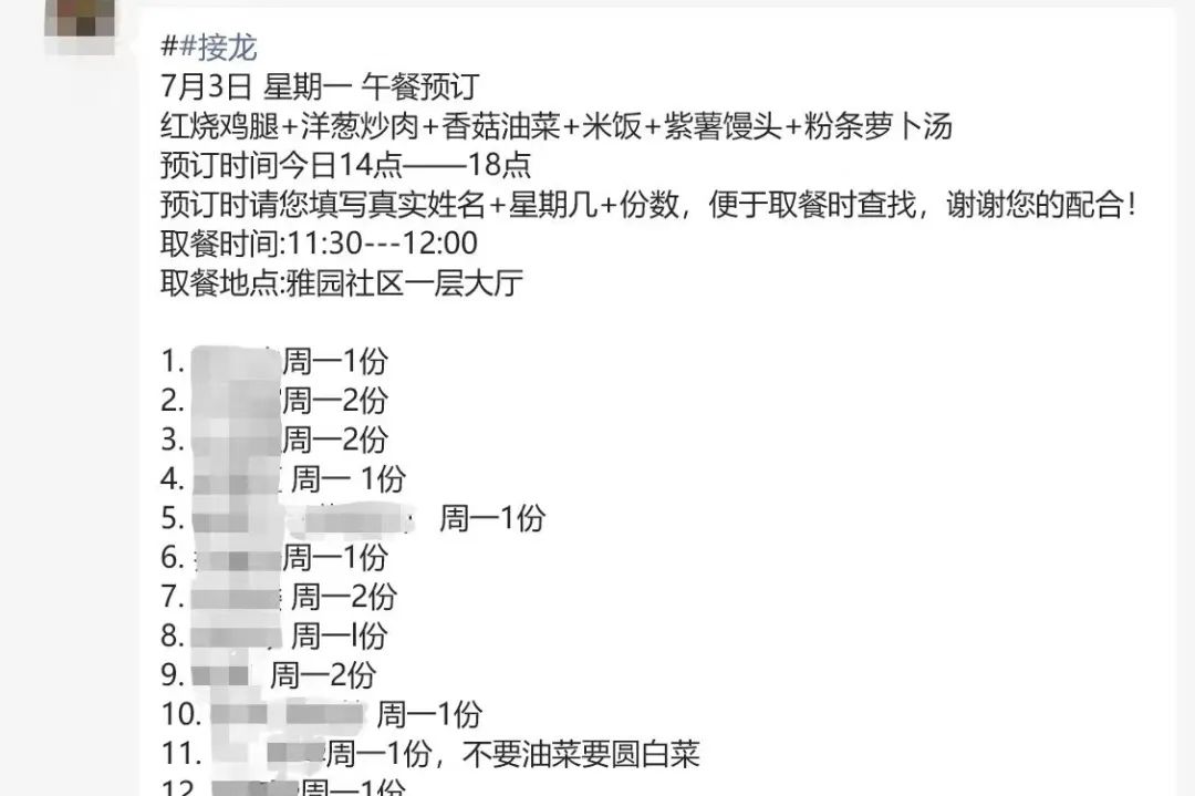 “经过前期调研,我们发现居民对‘老年餐桌’的需求比较高,所以我们协调了辖区的养老驿站,为大家提供订餐服务,但由于条件和场地资源有限,我们采取让大家领取盒饭带回家吃这样的方式,缓解“就餐难”的问题,完善居家养老的服务内容。”和谐雅园社区党委书记宋玮介绍道。