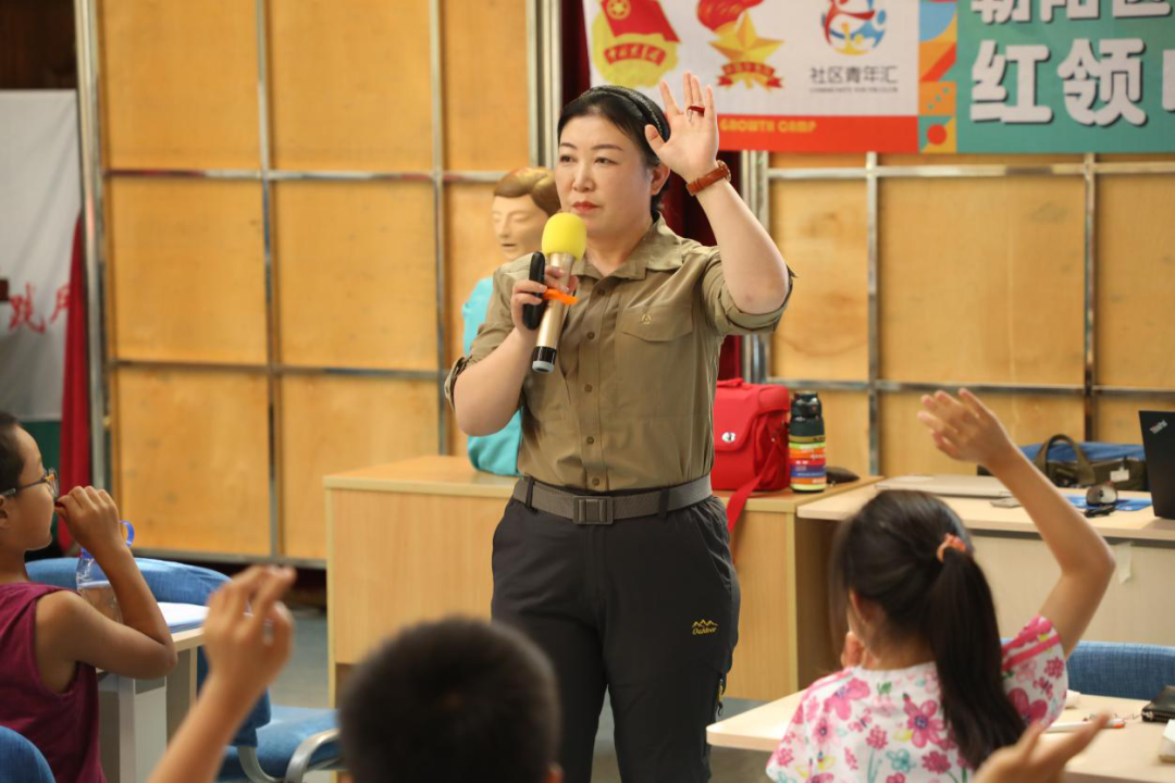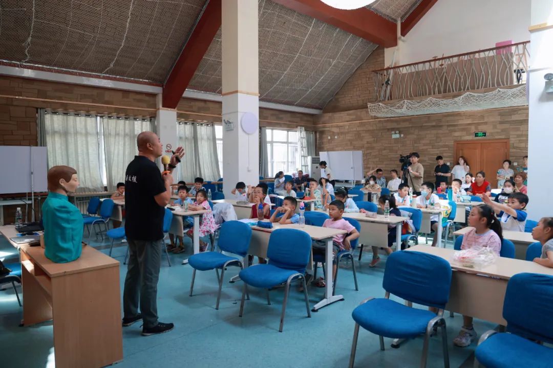 应急救护讲师王海欧根据暑假期间可能会遇到的气道异物梗阻、溺水、中暑、触电、烧烫伤等意外伤害情况如何防范进行了讲解和遇险急救实操。活动中通过互动式安全教育向青少年们科普了用口哨吹响摩斯电码进行求救的方法。