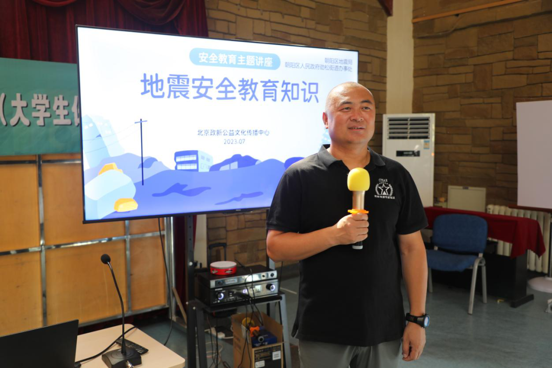 活动邀请了防震减灾讲师徐广春向青少年们讲授防震安全知识,科普了地震的成因和预兆,并在现场指导如何应对地震和面对灾害时的自救互救。