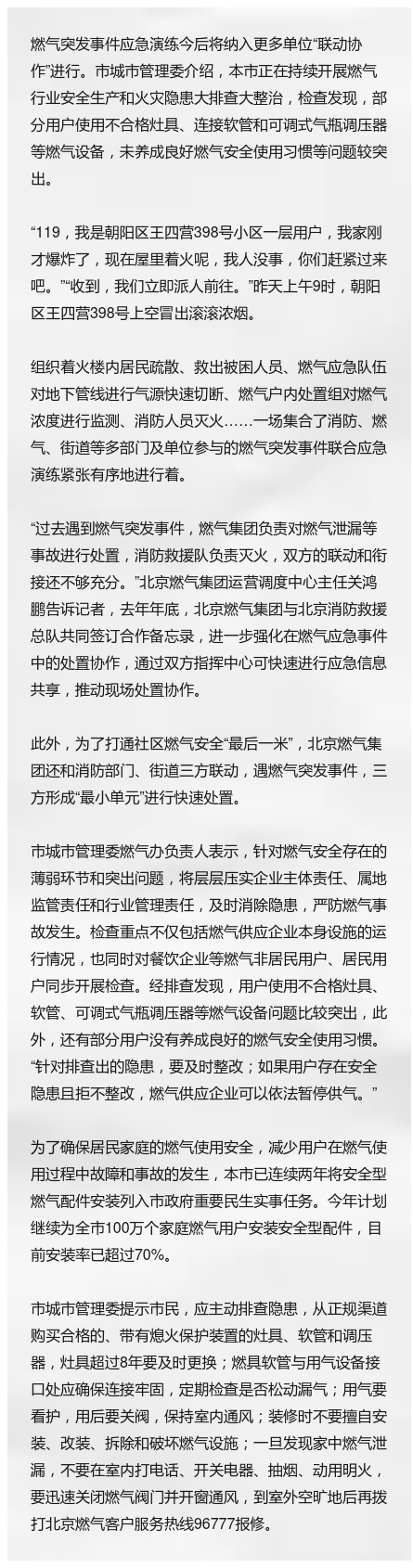 燃气突发事件应急演练将纳入更多单位“联动协作”