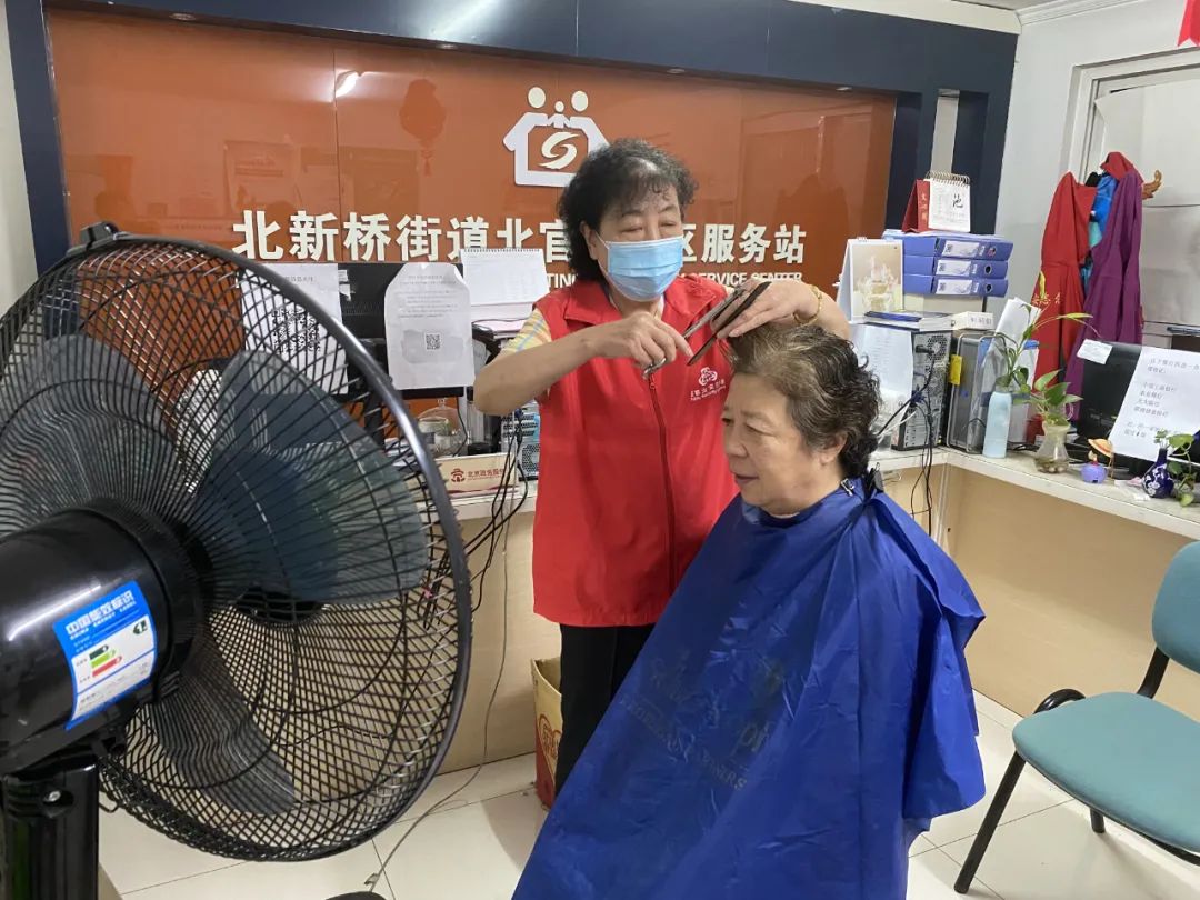 北新桥街道北官厅社区开展“我为群众办实事 点亮百姓微心愿”义务理发活动