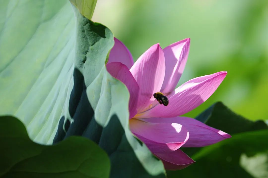 漫步在北孙各庄村的荷塘步道,朵朵古莲向阳而立,有的恣意盛开,有的含苞待放。微风拂过,莲叶、莲花翩翩起舞,宛如美人凌波。周边的蜜蜂、蜻蜓也闻香而来,与之共舞。