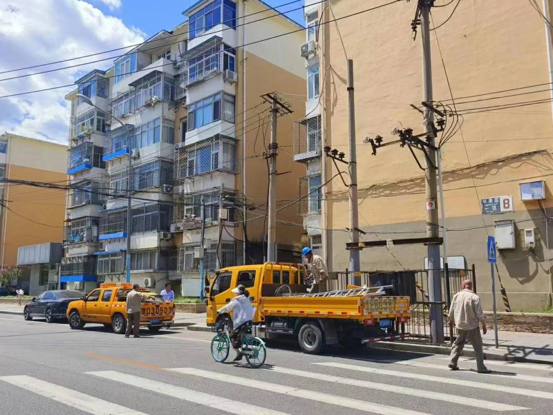 由于更换维修时间较长,为确保居民快速恢复正常生活,城市管理办公室(城建)经与国家电网协商后,立即调派发电车支援发电,保障居民能正常用电。同时城市管理办公室(城建)、居委会、物业和相关部门连夜召开联席会议,确定下一步维修方案。最终在7月8日上午11时将电缆故障修复完毕,苹一区7号楼恢复正常供电。