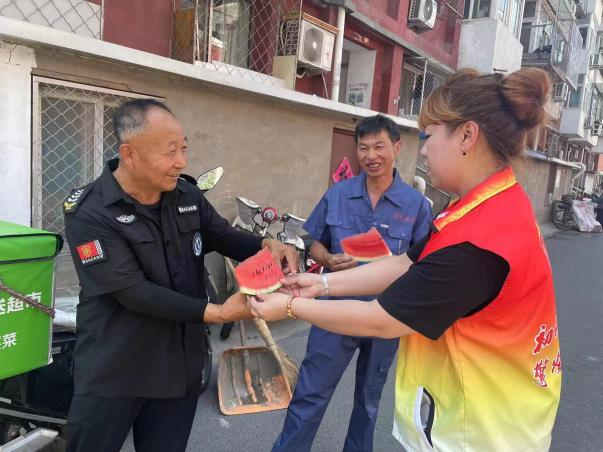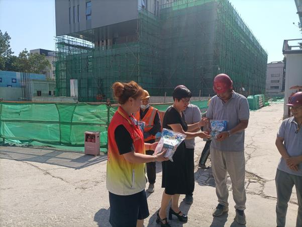由定安里社区工作者组成的“送清凉志愿小分队”,在社区党委书记郝丽欣的带领下,把装有风油精、驱蚊水、防暑药品的“夏日清凉包”和矿泉水一一送到辖区内建筑工人和环卫工人手中,并叮嘱大家合理安排作息时间,避开高温时段,错时作业,确保安全工作。晒得黝黑的师傅们接过清凉包时露出了惊喜的笑容,连声说“感谢街道和社区对我们的关心”。