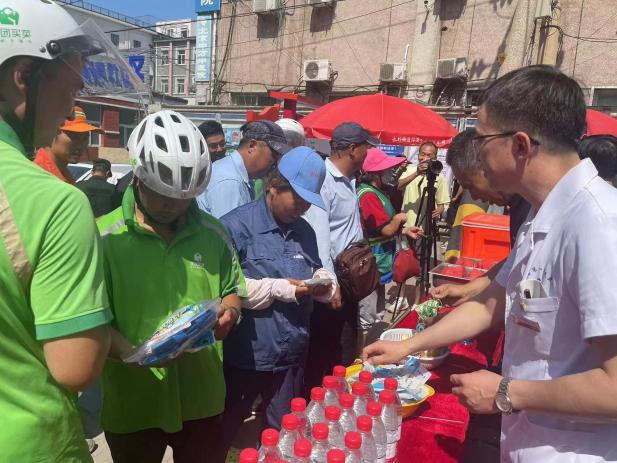 高温天气让“热射病”这一名词刷屏,引起广泛关注。为增强居民健康意识,活动现场,来自东城区第一人民医院的医生用通俗易懂的语言,向居民群众和户外工作人员科普如何预防中暑以及中暑应急处置措施,叮嘱大家要多饮水、注意防晒等生活细节并提供义诊咨询服务,同时对居民朋友提出的各种问题进行耐心解答。