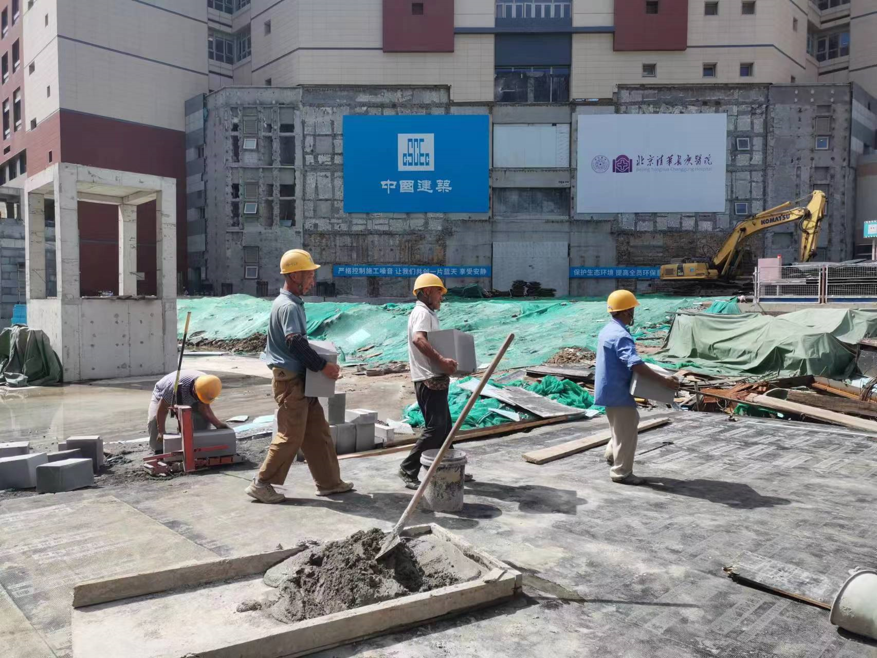 “我们很重视农民兄弟施工的安全问题,特别是最近几天持续高温,我们给工人师傅们准备了绿豆汤,另外也积极调整了作息时间,把施工时间尽量放在早上或是傍晚,在不影响施工进度的前提下,为工人师傅创造最好的后勤服务。”北京清华长庚医院二期工程项目专案组负责人赵琨浩说道。