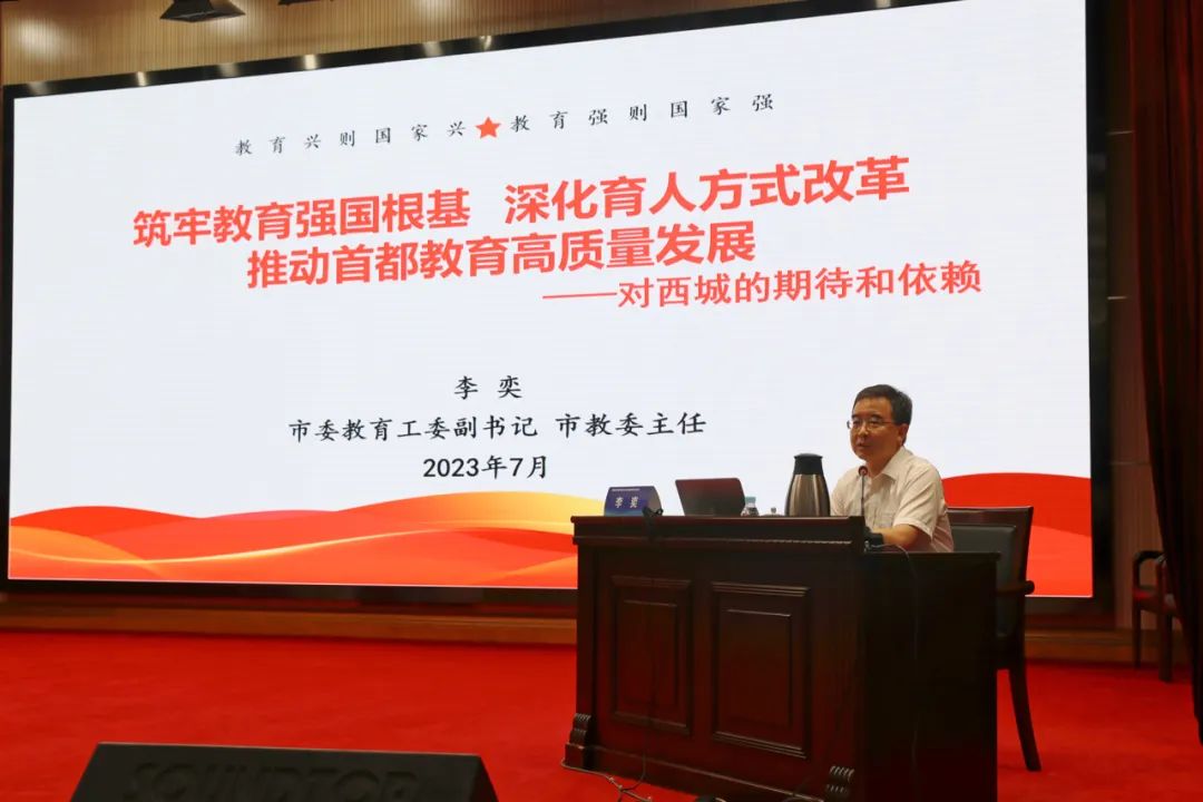 会上,李奕作了题为《筑牢教育强国根基 深化育人方式改革 推动首都教育高质量发展》的报告。报告分为深入学习贯彻习近平总书记系列重要讲话精神,充分发挥基础教育基点作用和对西城教育高质量发展建议三部分内容。