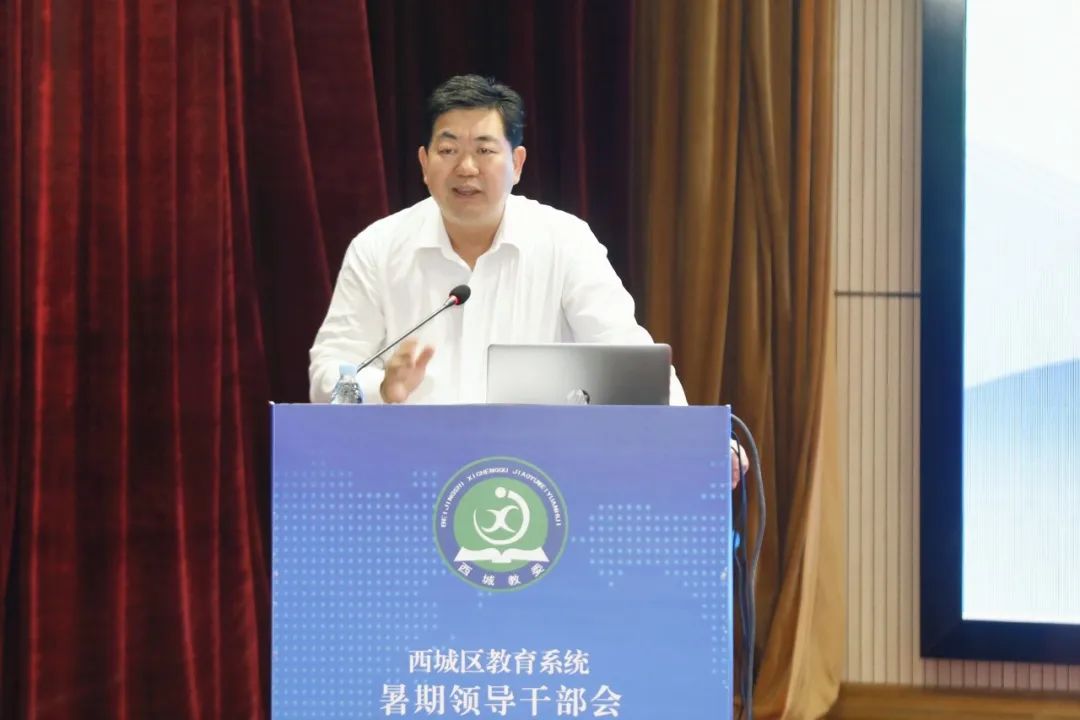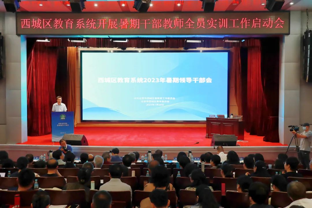 此次西城区教育系统的暑期实训工作以“筑牢教育强国根基,全面提升干部教师综合素养,促进西城教育高质量发展,打造适应未来发展的人才队伍”为主题。实训内容为深入推进中小学党组织领导的校长负责制改革,加强师德师风建设,聚焦“双新”政策要求的学校管理和教育教学实践,围绕课程领导力、教学设计、作业设计、考试命题与实施能力、教学质量管理等,按照理论政策、能力提升、实操训练等内容,从宏观、中观、微观三个层面为干部教师专业能力提升提供专业实训。