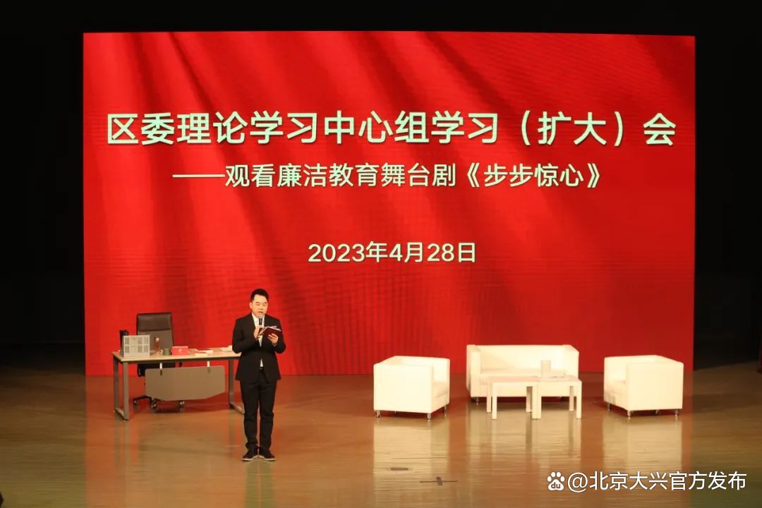 首演结束后,因《步步惊心》舞台剧的创新表现形式及深刻的警示教育作用,在大兴区委理论学习中心组学习(扩大)会上,区四套班子领导、法检“两长”,以及全区副处(含)以上领导干部、2022年1月以来新提拔的正科职公务员近千人集体观看了此剧。以文化人、以廉育人,通过展演,警醒在座的党员干部要筑牢理想信念,不碰纪律红线,牢牢守住一名共产党员的政治底线。