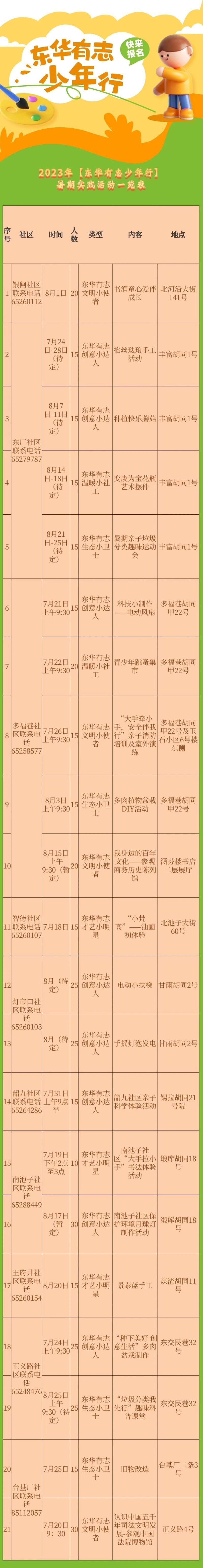2023年“东华有志少年行”系列实践活动继续开展,东华门街道组织下辖10个社区,联合地区博物馆、文物保护单位等文旅资源,精心策划了20余场课外实践活动,欢迎属地青少年们踊跃参与!