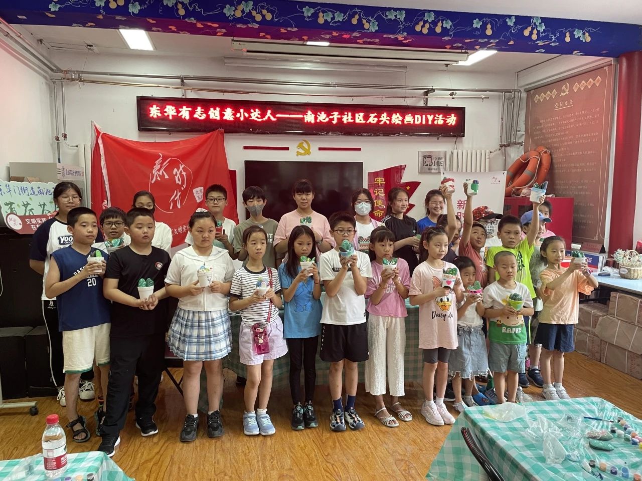 7月11日,暑期首场活动“东华有志创意小达人——DIY石头画”在南池子社区成功开展。