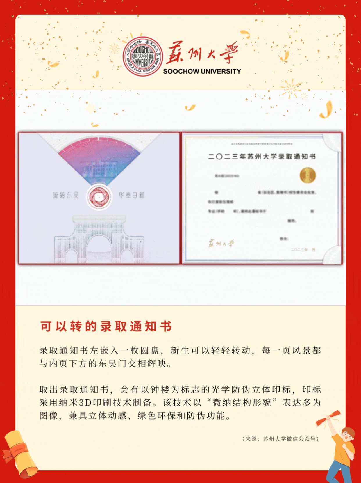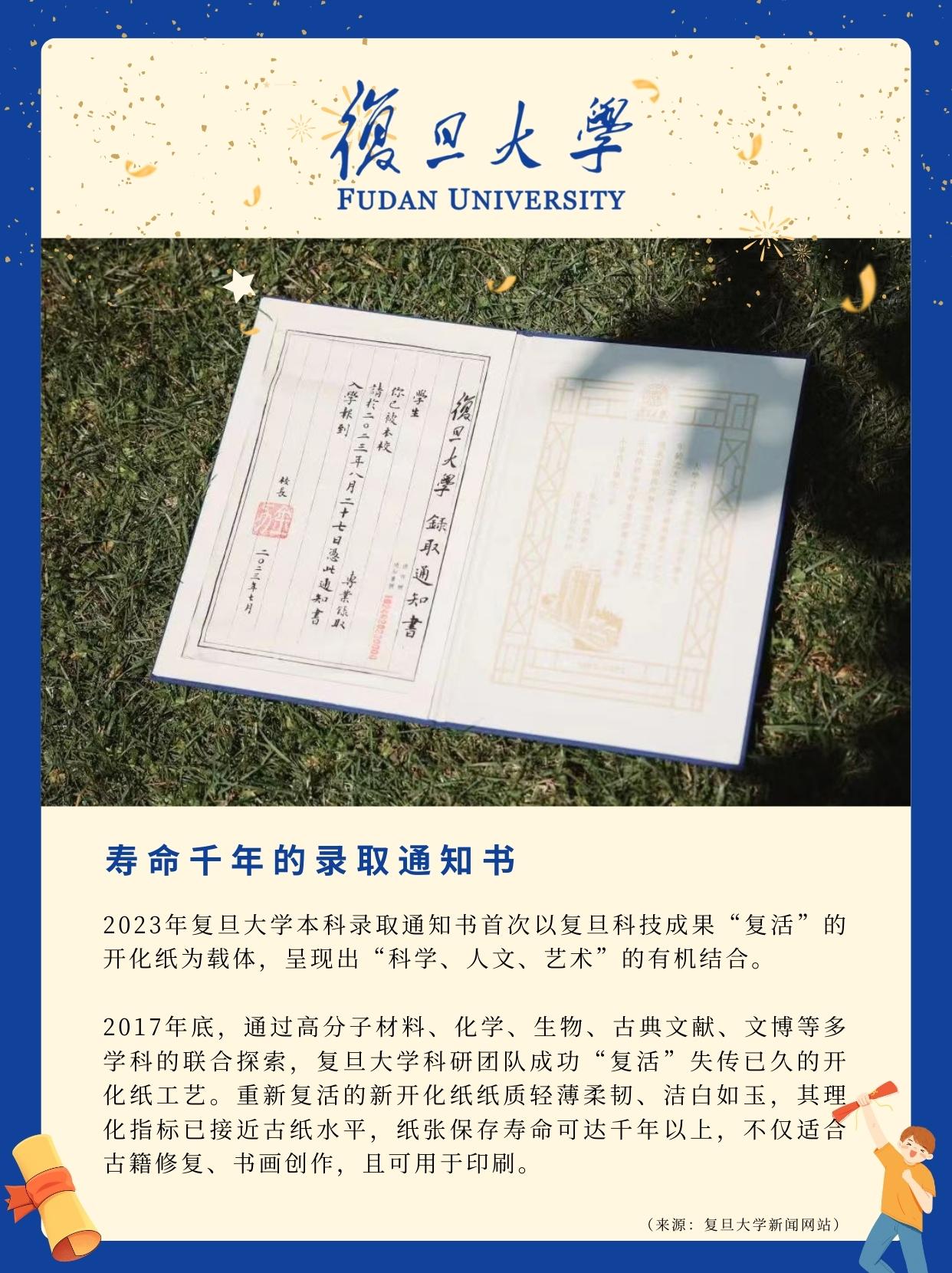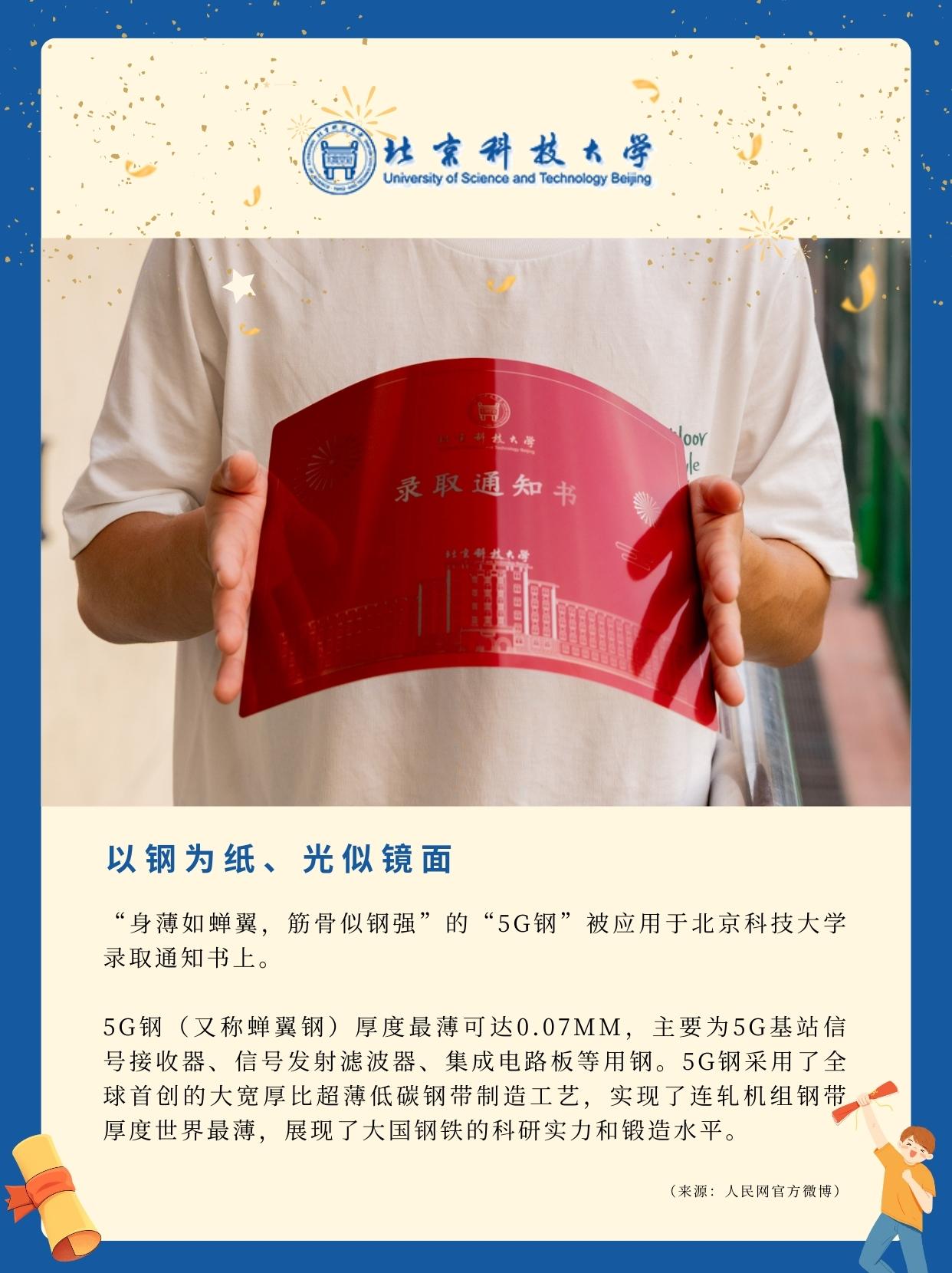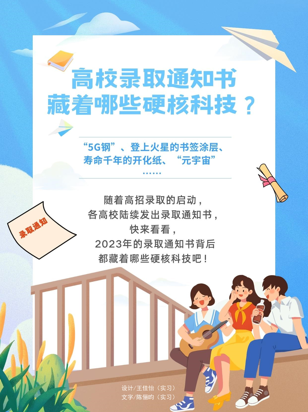5G钢、登上火星的书签涂层、寿命千年的开化纸、“元宇宙”……随着高招录取的启动,各高校陆续发出录取通知书。快来看看,2023年的录取通知书背后都藏着哪些硬核科技吧! 除了上面这些,你还看到哪些硬核录取通知书?欢迎在评论区留言互动。