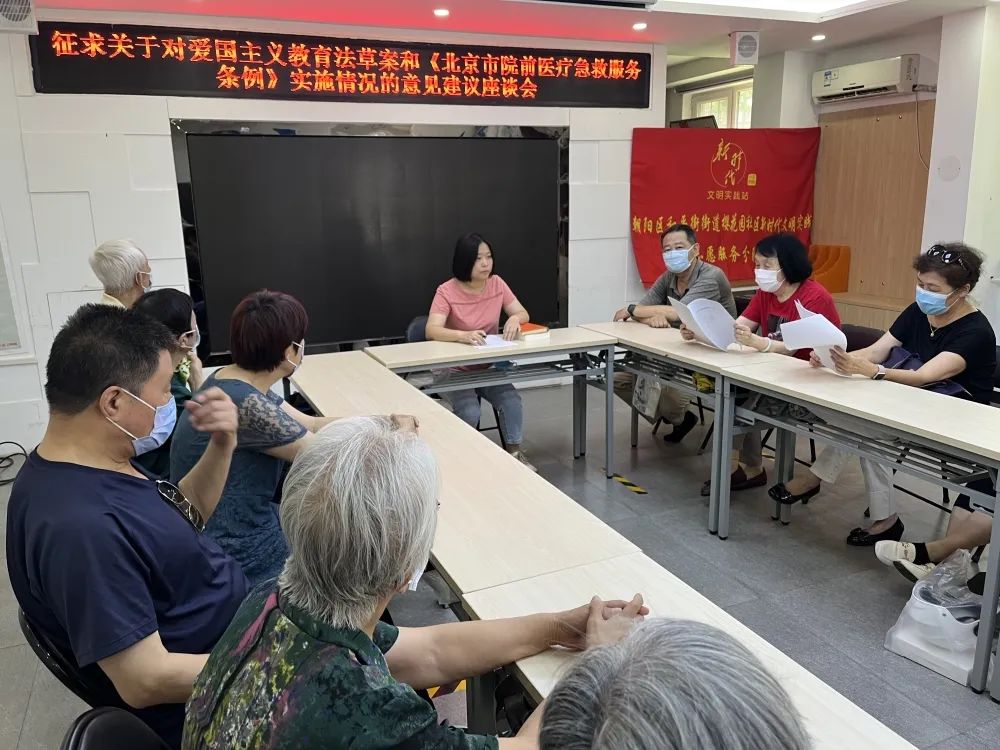 根据市、区人大常委会工作部署,近日,和平街街道围绕《中华人民共和国爱国主义教育法(草案)》和《北京市院前医疗急救服务条例》实施情况开展意见建议活动,依托街道代表之家(立法联络站)和各社区代表联络站,通过召开座谈会、线上征求等多种方式,征求16名市、区人大代表和150名群众的意见建议共计23条。