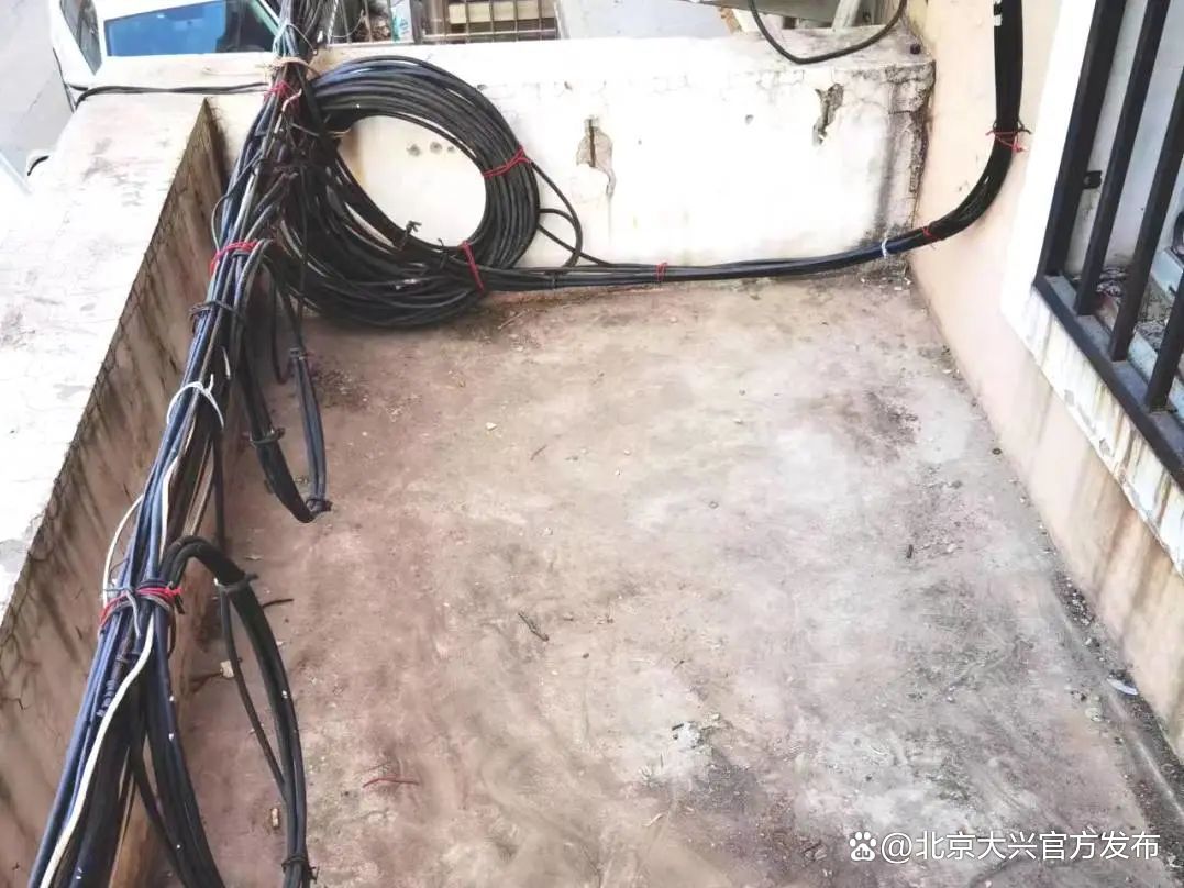 对于居民楼外较长的线缆,街道与责任单位进行专业勘测后,由专业人员对线缆进行“绕圈式”捆绑,缩短线缆长度,以防垂落缠绕。