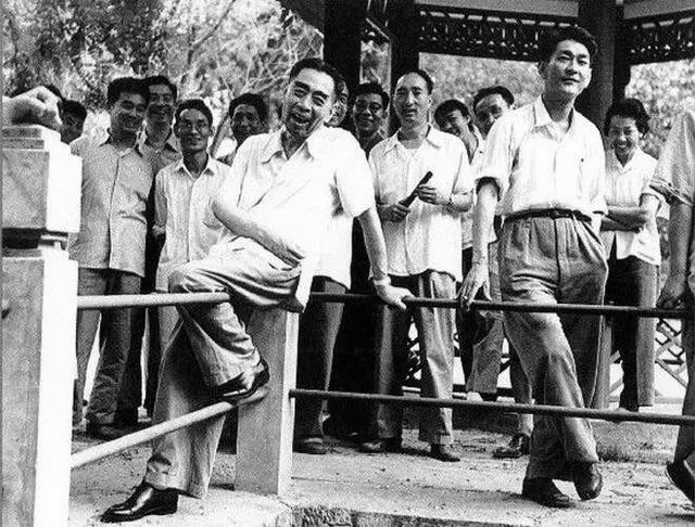 1961年7月,“新侨会议”后,周恩来和出席全国故事片创作会议的代表重游北京香山,从图片中我们可以看到香山双清别墅的旧貌,院内标志性的六角红亭是照片显著的背景。