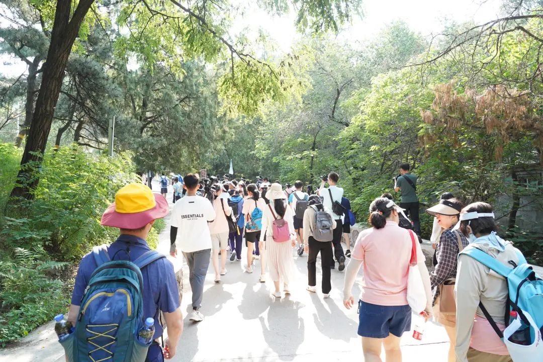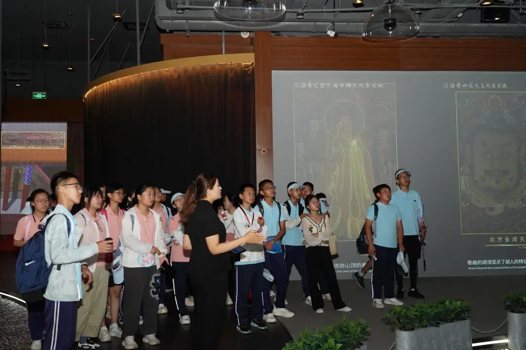 向山下行进,来到法海寺壁画展览馆。在馆内,展现着局部放大图,最为精美的水月观音的薄纱一丝丝笔画细如蛛丝,交织出如蝉翼般轻薄的纱,羽球的质感在创作的过程中也不断生动,这些细节的精美使得作品愈发出彩。师生们还观看了数字技术展现的法海寺修建过程,其中呈现出15位画家历时5年完成的事实,严谨斟酌每一处落笔的创作过程,他们对壁画艺术创作至睡觉手中仍握笔的废寝忘食的境界,使得师生们不由得对古人的精益求精的匠人精神感到赞叹不已。
