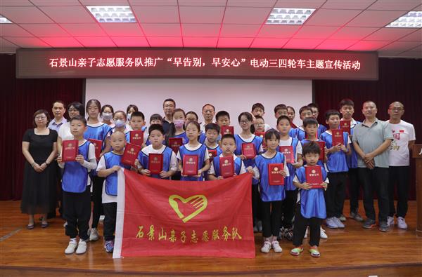 活动最后,领导们为居民代表发放了宣传品、为石景山亲子志愿服务队的志愿者们颁发了石景山区“五不一戴”交通安全宣传活动荣誉证书。