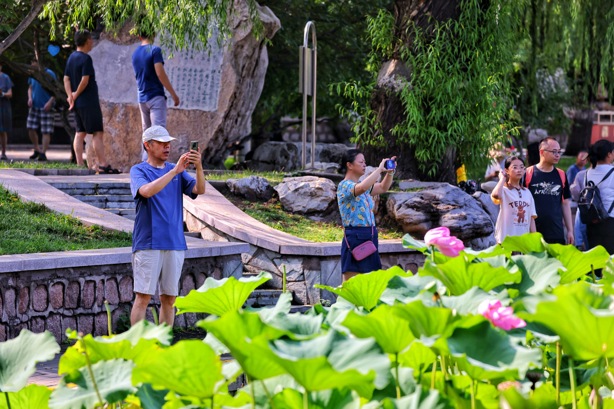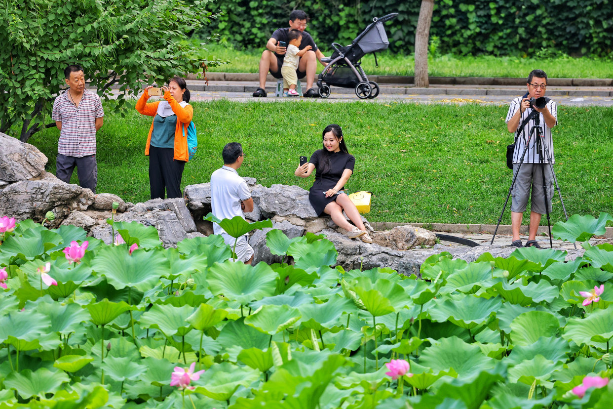 7月22日,一场夏雨过后,龙潭公园里空气清新、草木青翠,满池荷花愈显娇艳。市民在这里赏荷、漫步、游玩,畅享清凉,欢度夏日好时光。