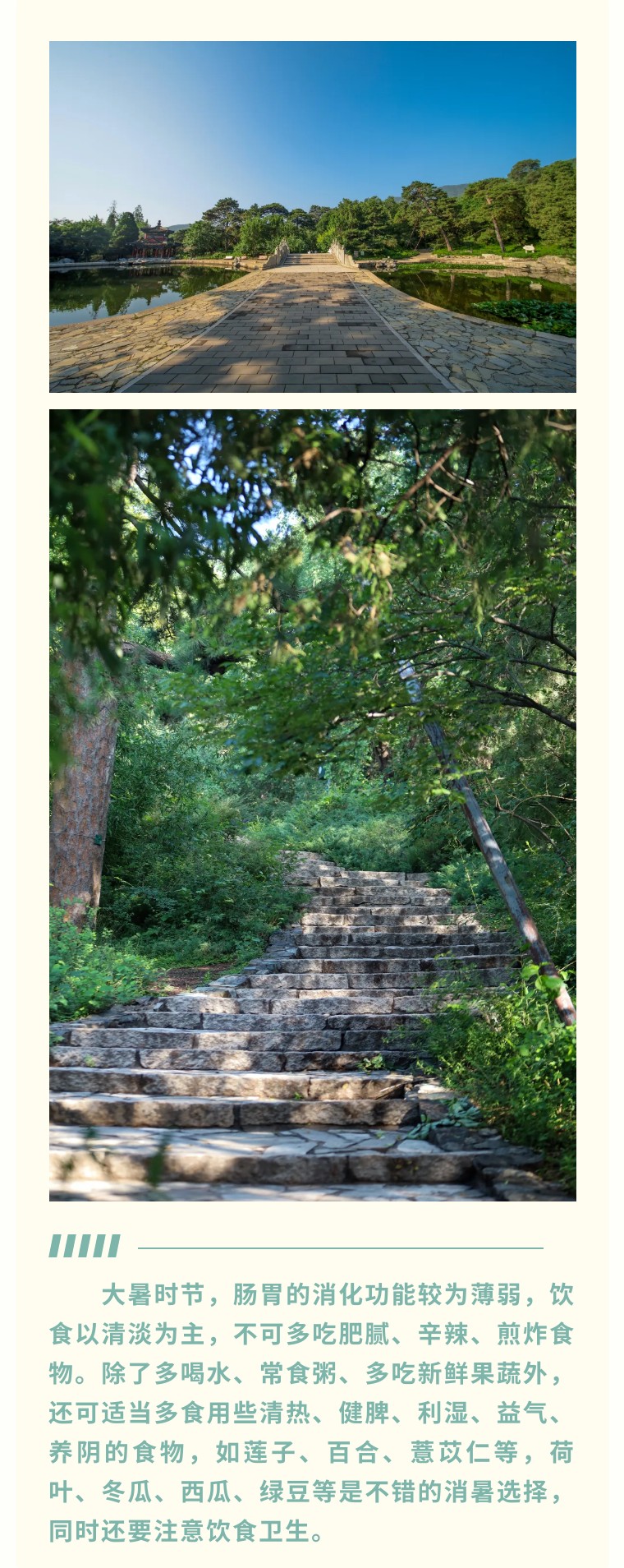 正值大暑节气香山公园内清新的空气、凉爽的山风、清澈的泉水,让您远离城市的酷热,感受清凉舒爽的夏日。忘却都市的喧嚣,来到这里,让大自然拥抱您,带给您清凉解暑的惬意。