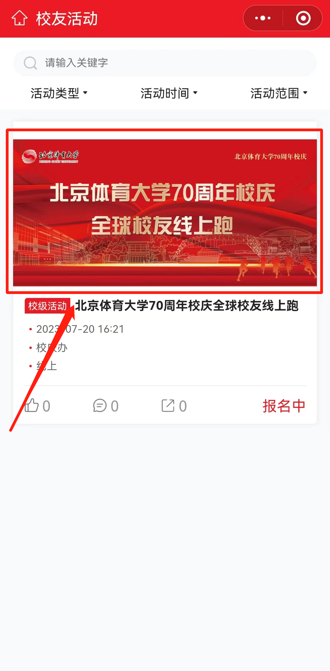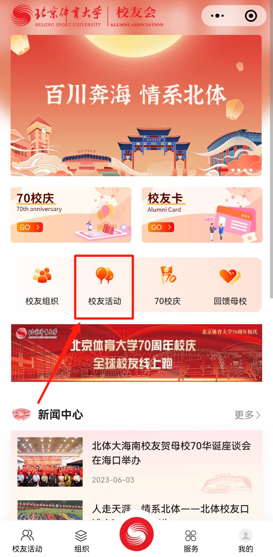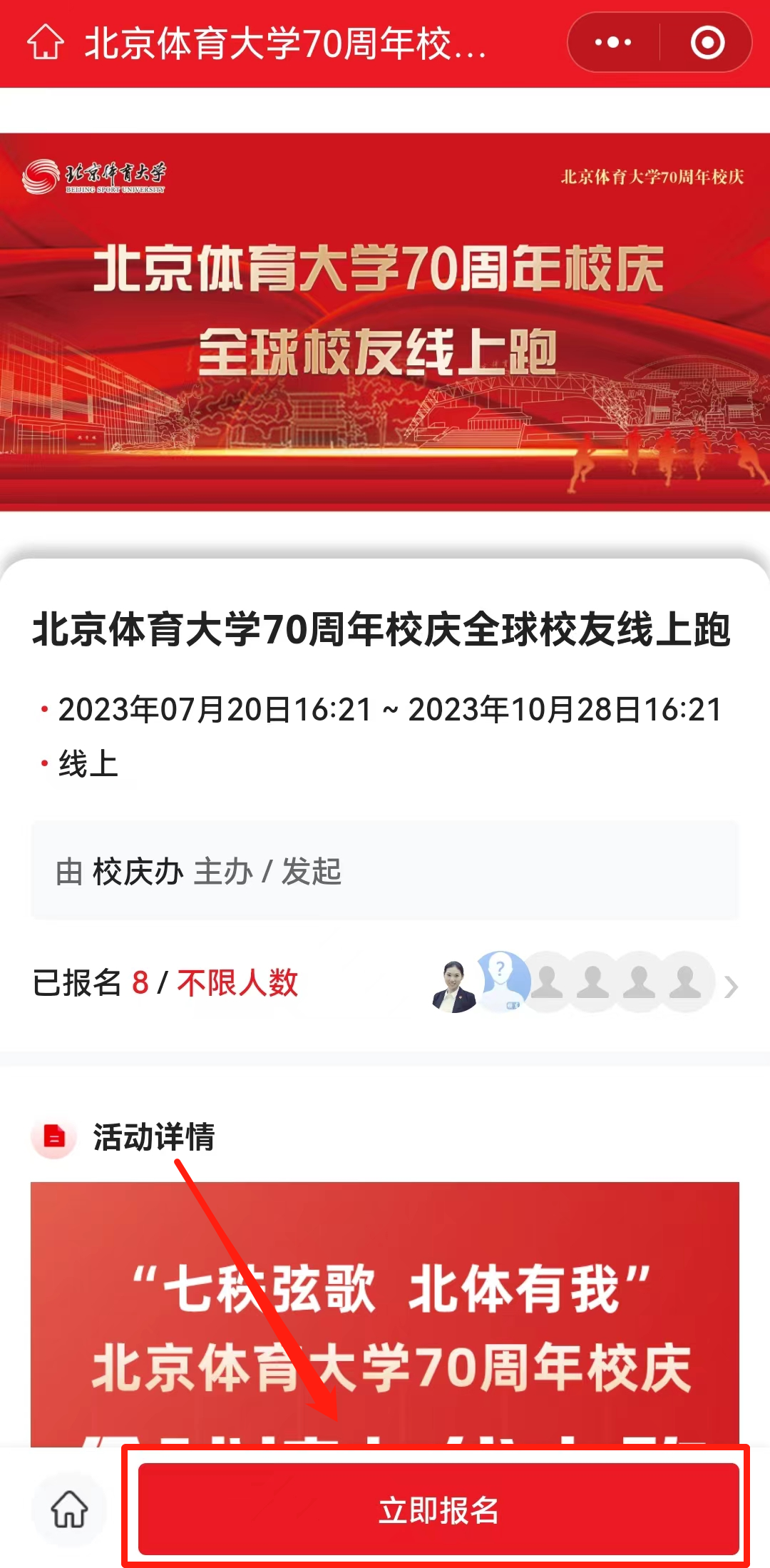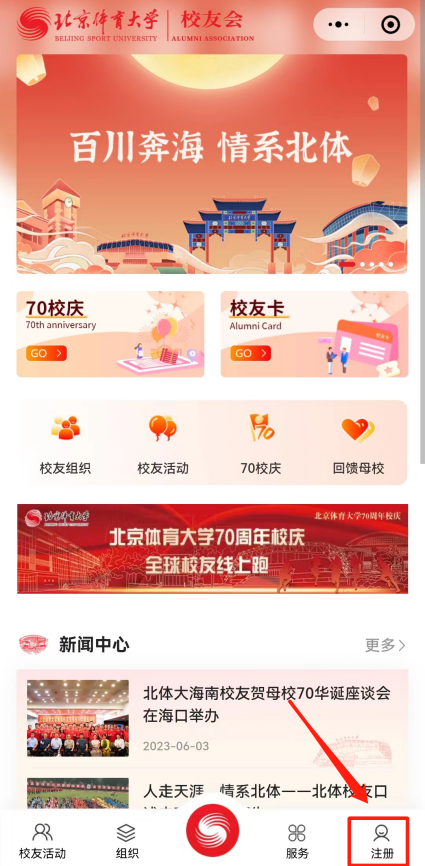 (点击此链接进入“北京体育大学校友服务平台”小程序进行注册及报名)