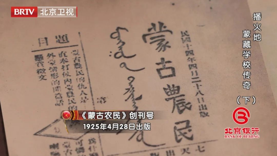 今晚21:05,由北京银行独家冠名播出的《档案》播出《播火地——蒙藏学校传奇》下集,敬请关注!