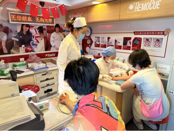 上午九时许,志愿献血的党员同志们已在献血现场等待就位,在工作人员的帮助指导下,依次进行信息登记、指标测量、血液初筛等流程,现场秩序井然。