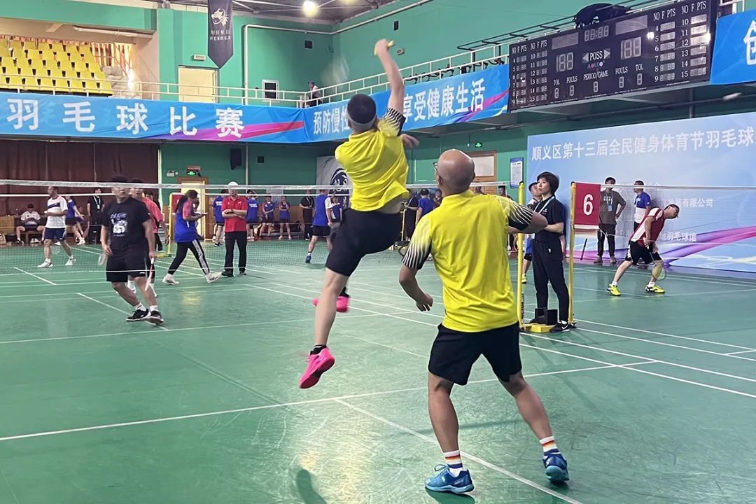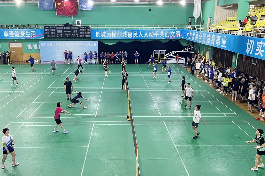 顺义区第十三届全民健身体育节羽毛球比赛现场。