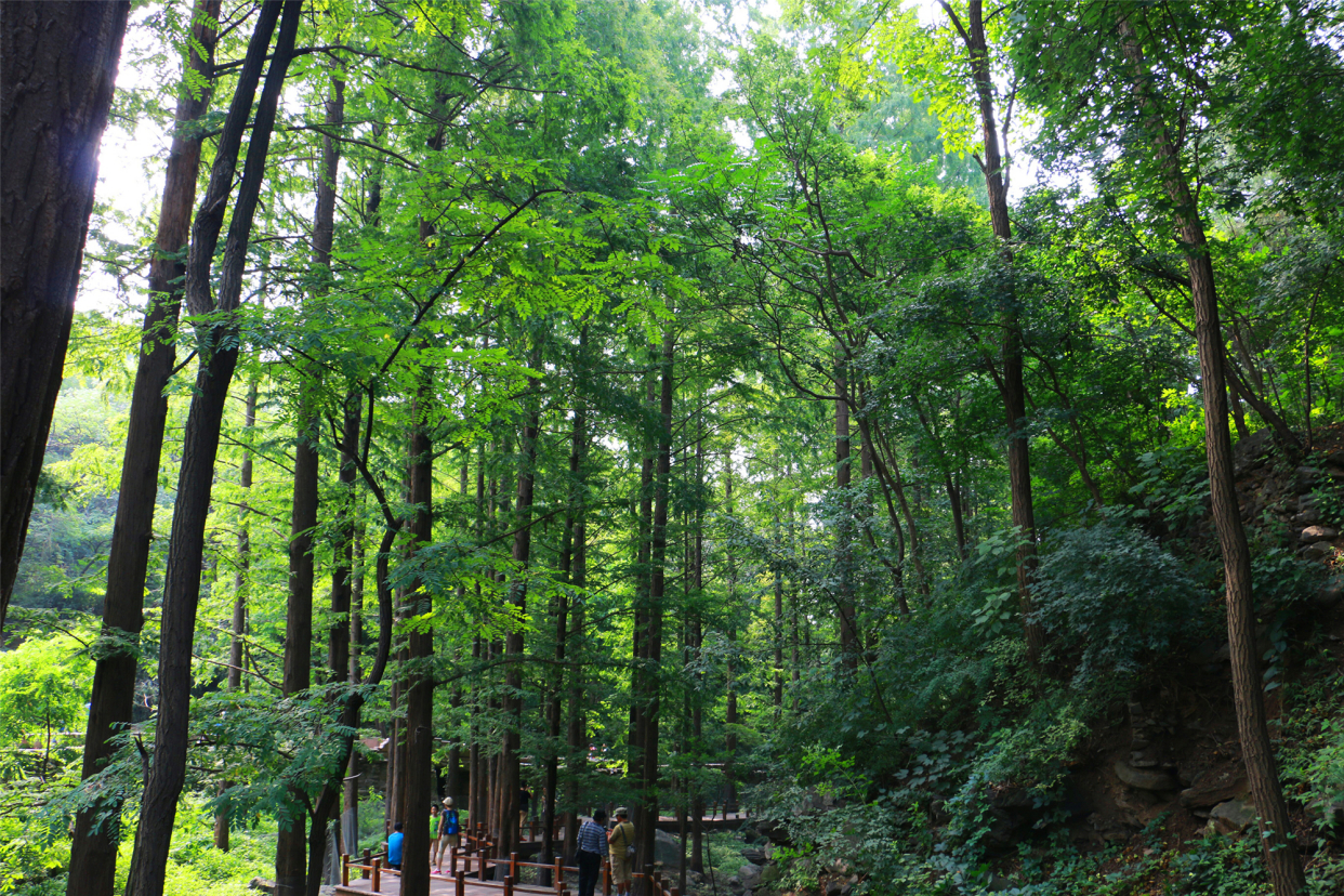 国家植物园北园樱桃沟,2021年获“首届北京网红打卡地推荐”,并连续三年入选“网红打卡地”榜单。不仅是因为樱桃沟自然沟壑与丰富的植被形成良好的生态景观,还因为樱桃沟里生长着我国三北地区面积最大的水杉林。