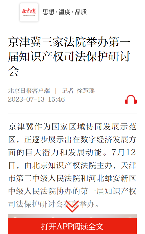 北京日报客户端:京津冀三家法院举办第一届知识产权司法保护研讨会