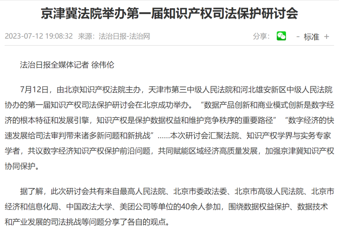 法治日报法治网:京津冀法院举办第一届知识产权司法保护研讨会