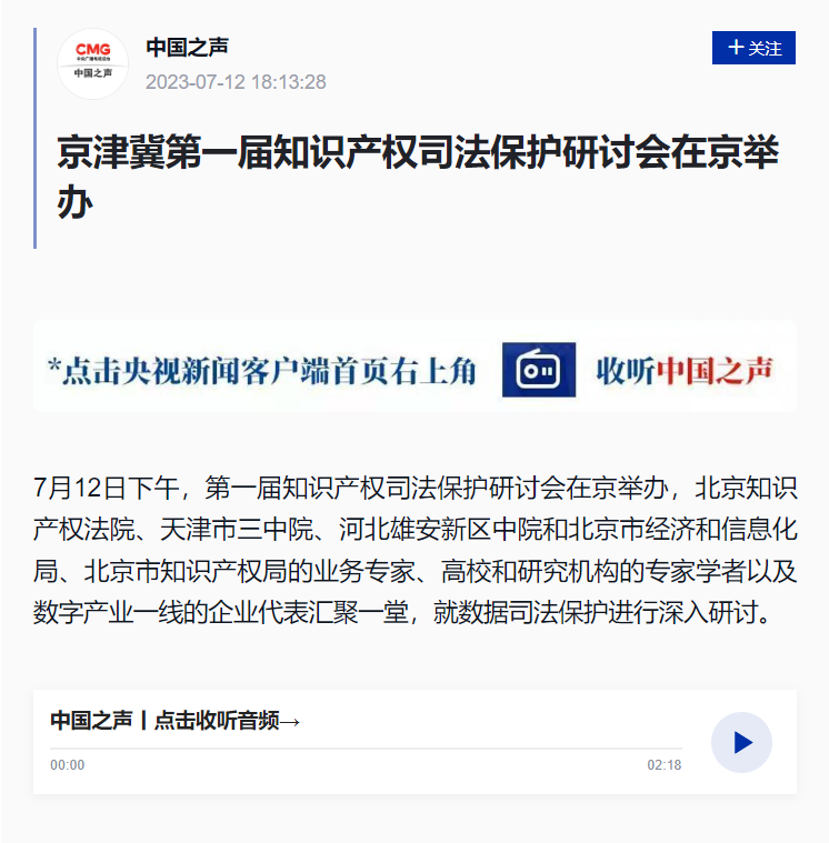 中央广播电视总台中国之声:京津冀第一届知识产权司法保护研讨会在京举办