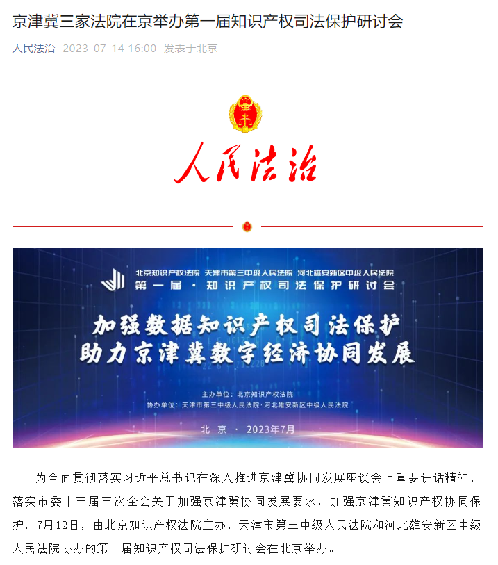 《人民法治》杂志:京津冀三家法院在京举办第一届知识产权司法保护研讨会