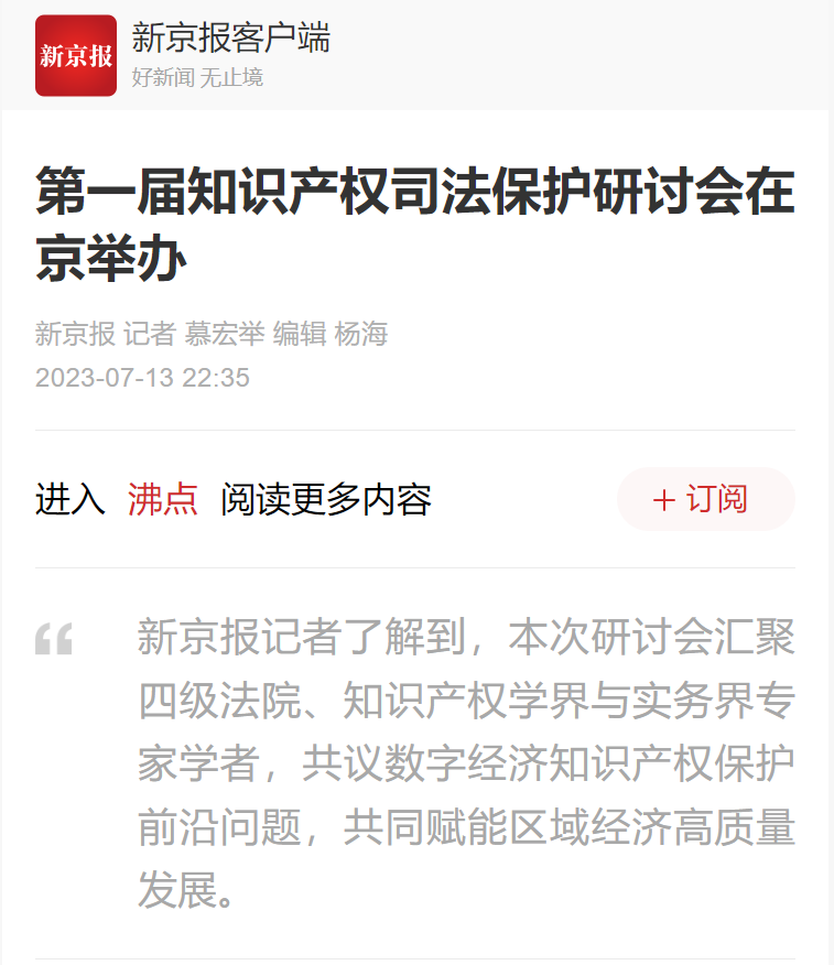 新京报客户端:第一届知识产权司法保护研讨会在京举办