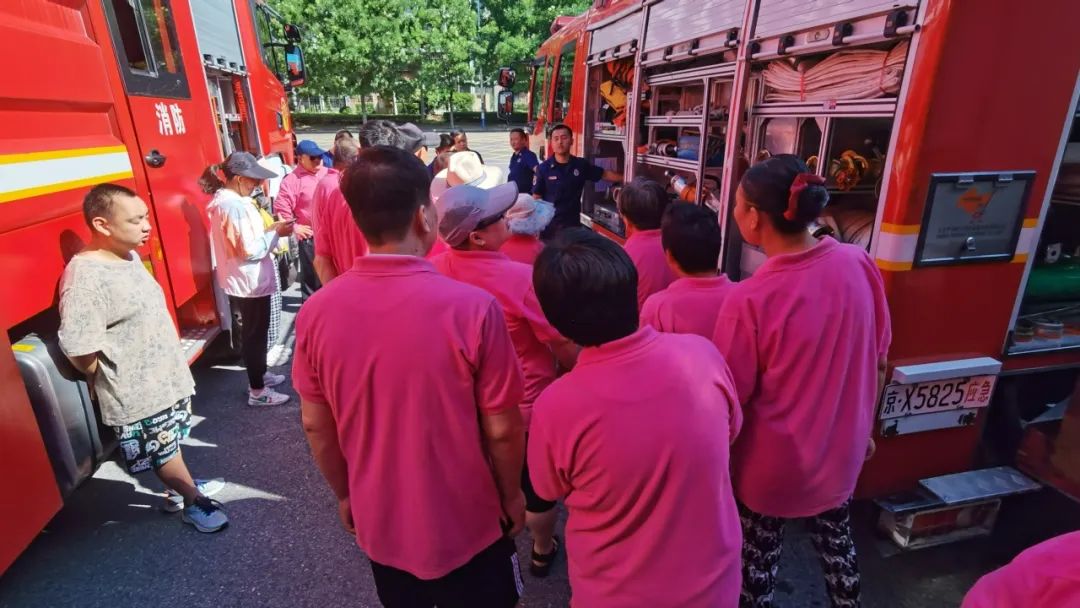 为加强残疾人消防安全教育,提高消防安全防范意识,7月25日,采育镇组织温馨家园职康站残疾人学员到采育消防救援站参观学习。