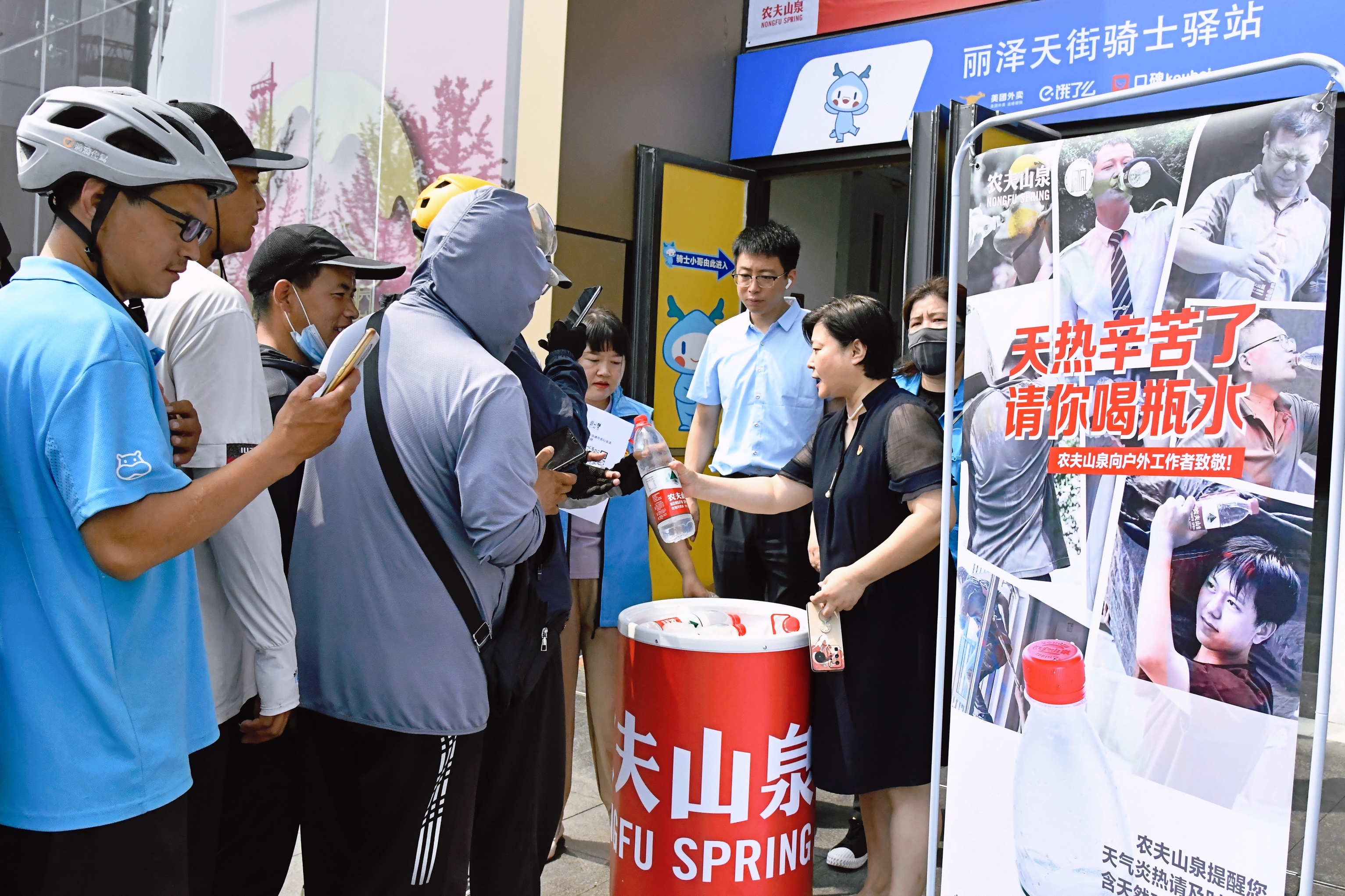 入伏以来,高温不减,为了切实关心关爱商务区新业态新就业群体,团结凝聚新业态新就业群体力量,7月26日,丽泽商务区党群服务中心联合农夫山泉开展“夏送清凉·情暖快递小哥”慰问活动,为高温天气下仍坚守岗位的快递和外卖工作人员送上防暑降温饮品。