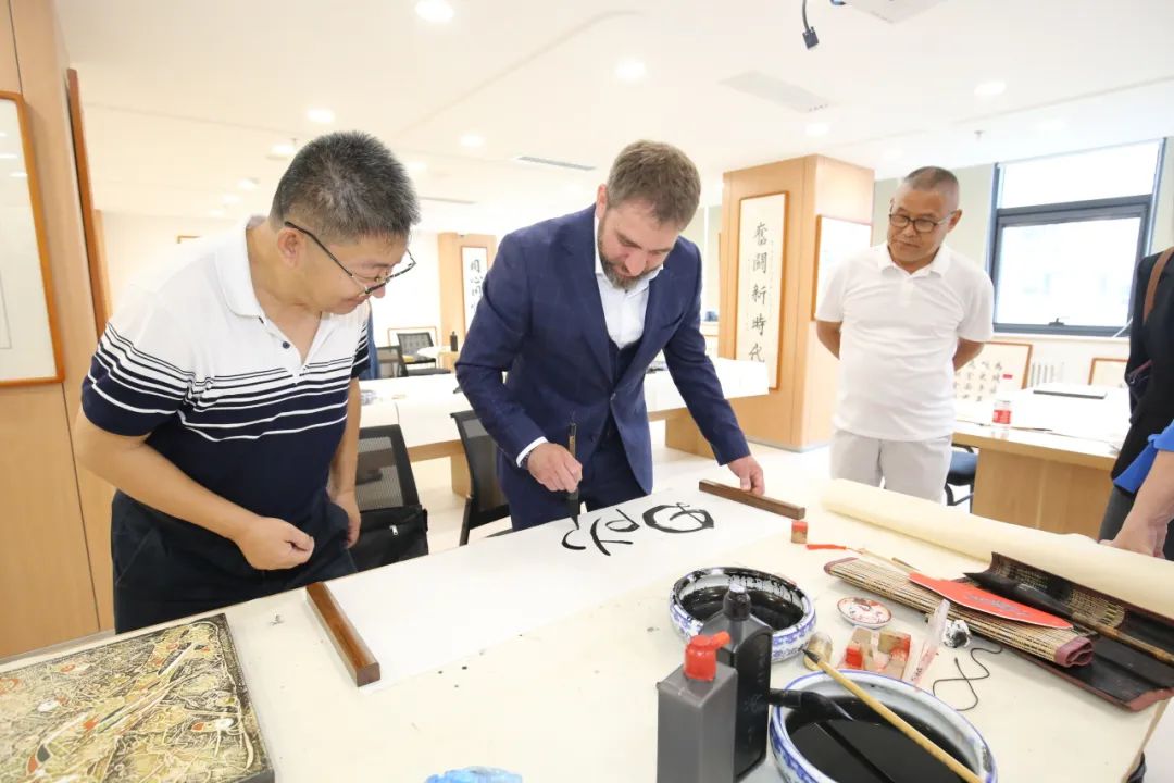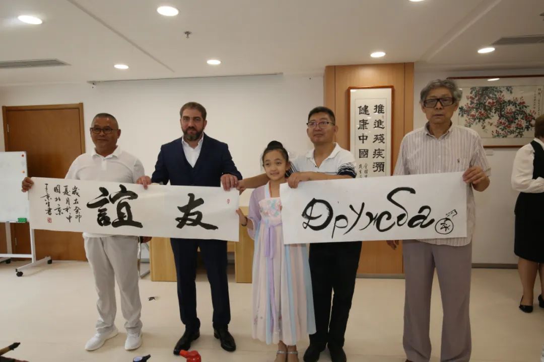 《折杨柳》《乌夜啼》《采莲曲》……一首首李白诗作尽在画作中展现,画家在现场为双方代表、残障人士、居民志愿者介绍创作理念。其中一位视障人士通过触摸盲文现场朗诵李白诗词,他说:“感谢两区为我们带来这样一场文化盛宴,并祝福中白友谊万古长青”,引来现场阵阵掌声,定格了当天画展的动人一幕。随后,列宁区代表团参观区残疾人联合会,与残障人士开展文化交流,共同创作书法作品,用笔墨传递“友谊”。本次画展是西城区为残障人士搭建的国际交流平台,更是列宁区友人对西城区残障朋友们的暖心问候和美好祝福。下一步,区政府外办将在两区政府的支持下,与区内单位共同秉持对残障朋友格外关心、格外关注的工作理念,积极促成双方务实合作,丰富区域公共文化供给,实现文化惠民。
