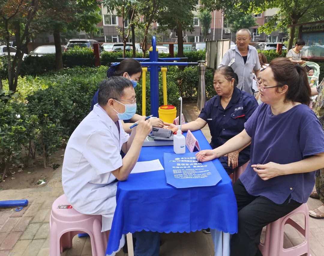 活动中,医护人员为社区居民免费测量血压,详细询问大家的生活习惯及身体状况,针对每位居民的不同情况,叮嘱他们日常注意事项。