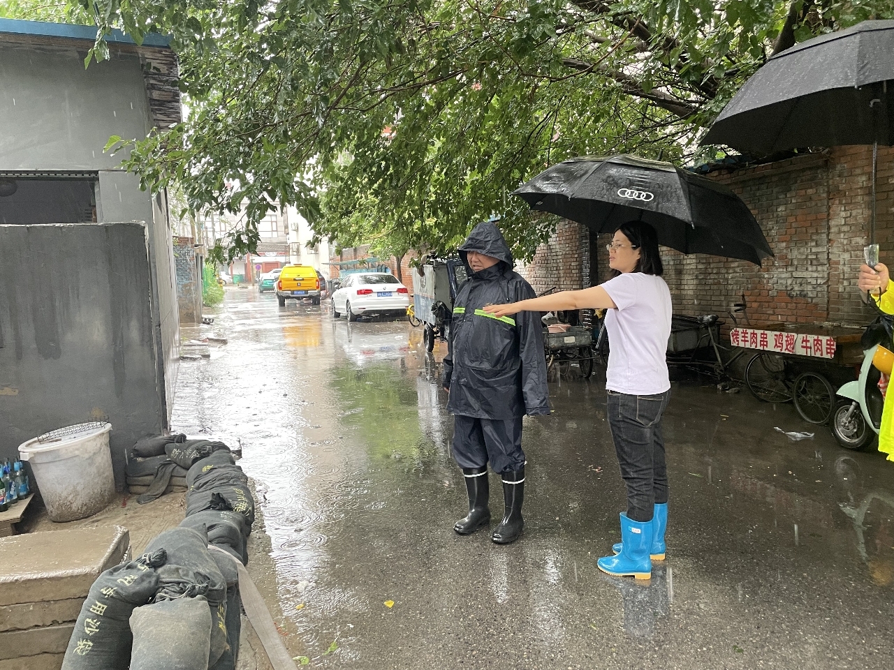全力巡检排查隐患。为进一步加强基层防汛力量,30日清早,街道各处级领导带队到包片社区(村)查看排水、地下室、防汛物资储备等情况,重点围绕危旧房屋以及积滞水点等进行风险隐患排查,帮助社区对平房区、施工地段、地势低洼区域等进行排水、清障。各社区(村)发动网格员进行有组织的定时排查,及清理雨篦子内的杂物,疏通下水道、缓解路面积水。同时,综合执法队对辖区内10家餐饮企业进行督导检查,强调用电用水安全,确保商户门前三包区域整洁、安全。