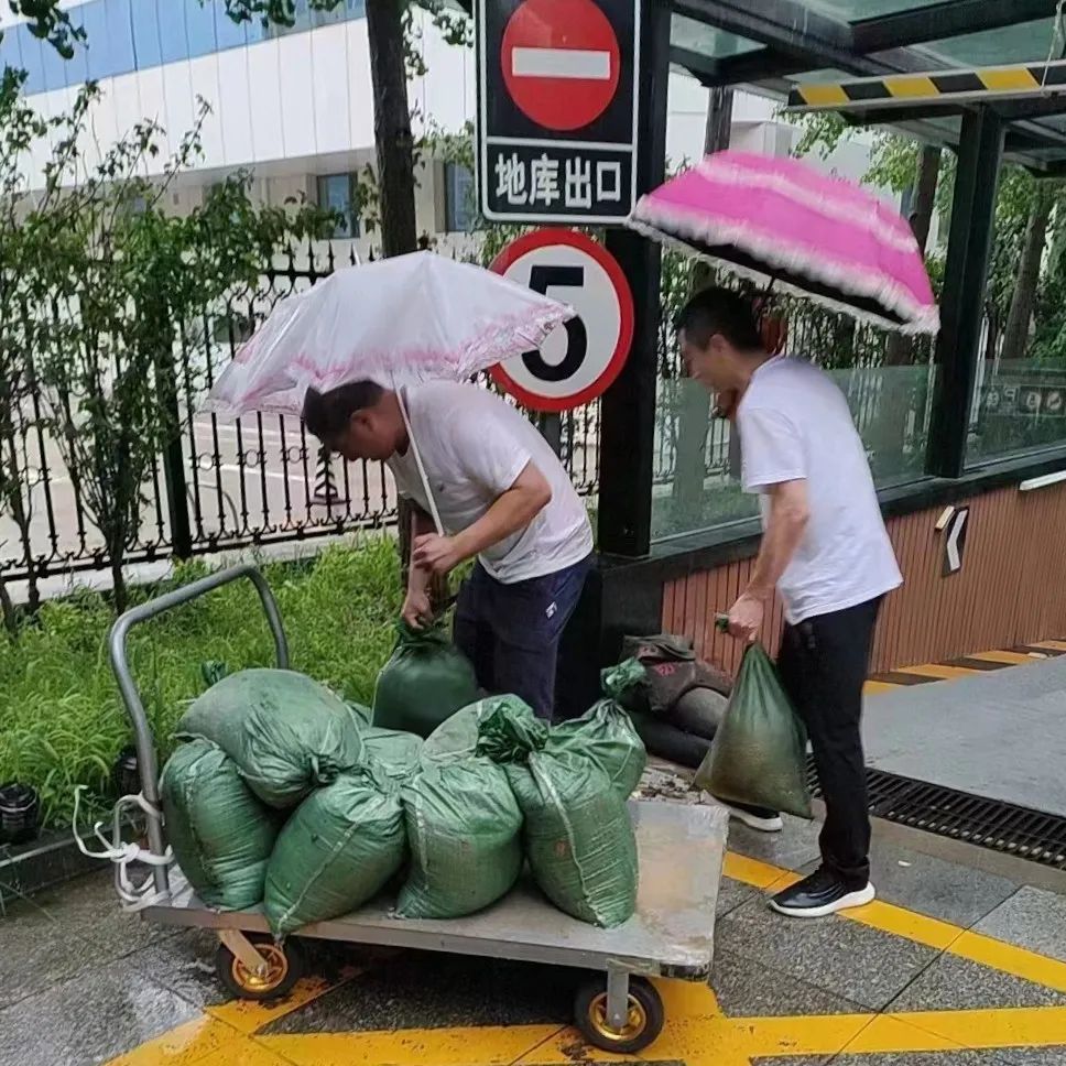 针对部分地下空间、地下车库、易积水倒灌区域提前布防,配备抽水泵、防汛专用沙袋等物资,做好应急抢险准备,有效防范雨水倒灌情况发生。