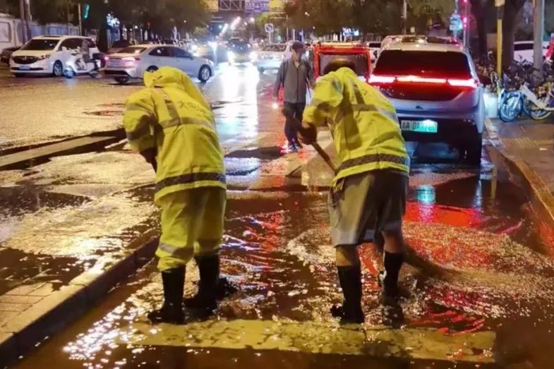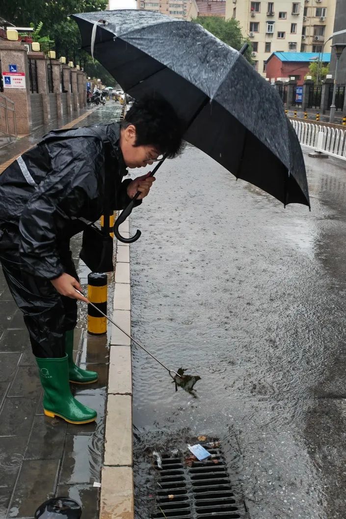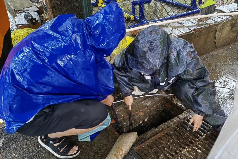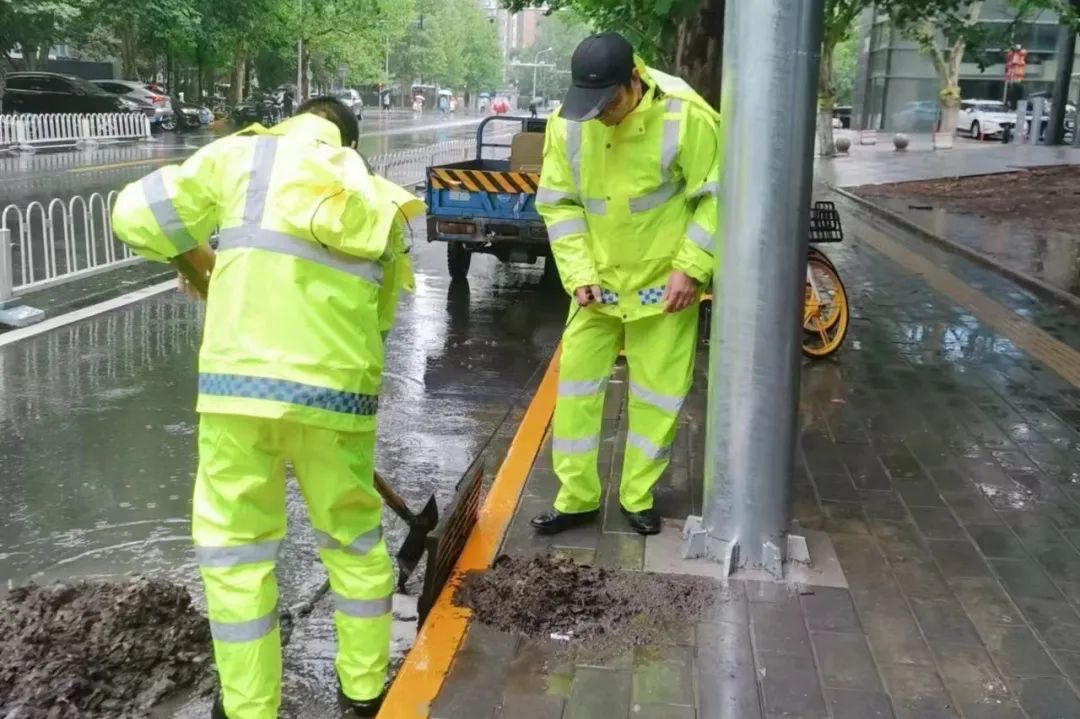 做到早发现、早处置,对巡查发现堵塞淤积的排水点位立即进行清掏疏通,并及时清扫路面积水,清理排水口附近垃圾、覆盖物,全力保障排水系统正常运行。