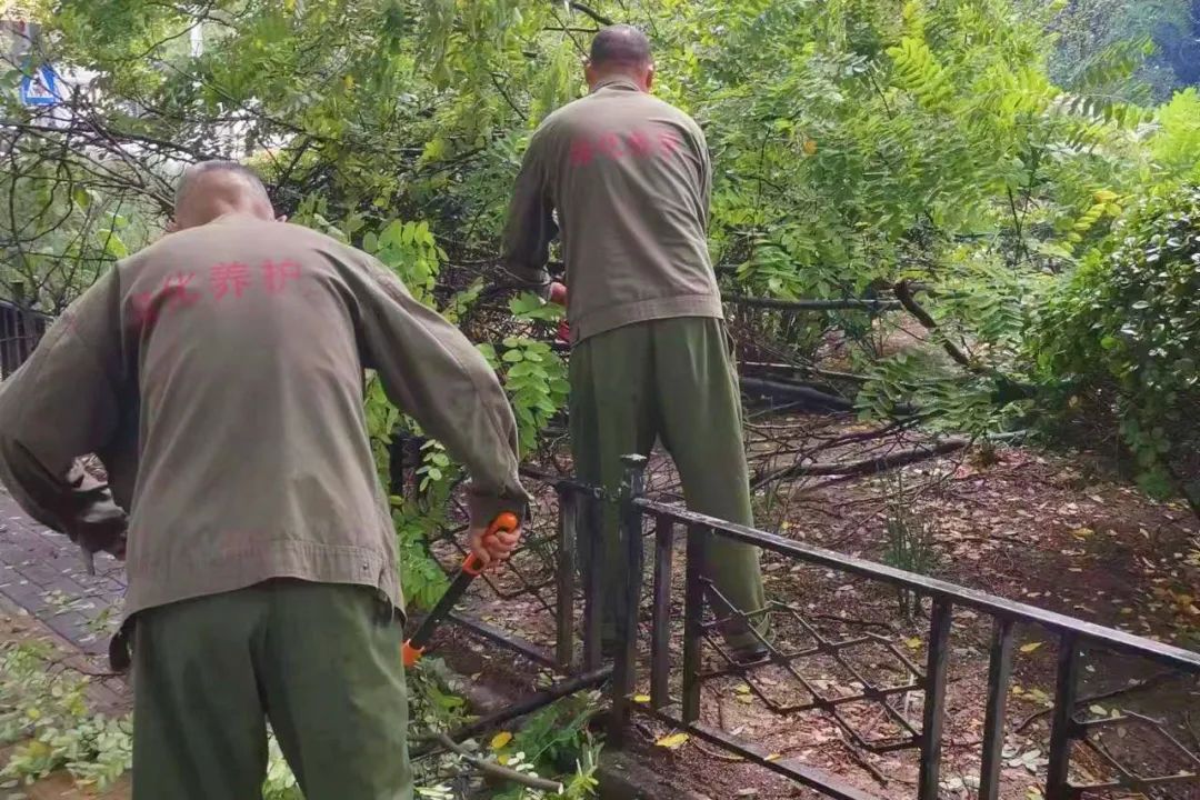 为做好强降雨天气防范应对,街道重点对居民小区、背街小巷及主次干道冠幅较大较密、存在安全隐患的树木进行修剪,降低树木倒伏风险,保证道路环境整洁畅通,行人、车辆安全通行。