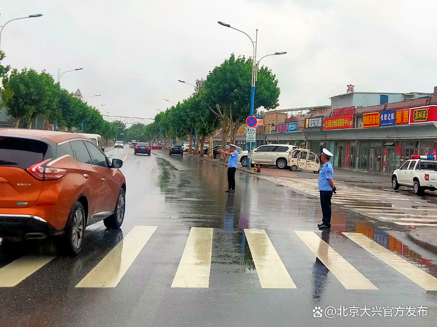 综治中心安排交通疏导员在安定镇便民购物中心门口及黄徐路和青礼路交叉路口展开交通疏导,引导指挥行人和车辆安全有序通行,全力保障降雨天气群众出行安全。