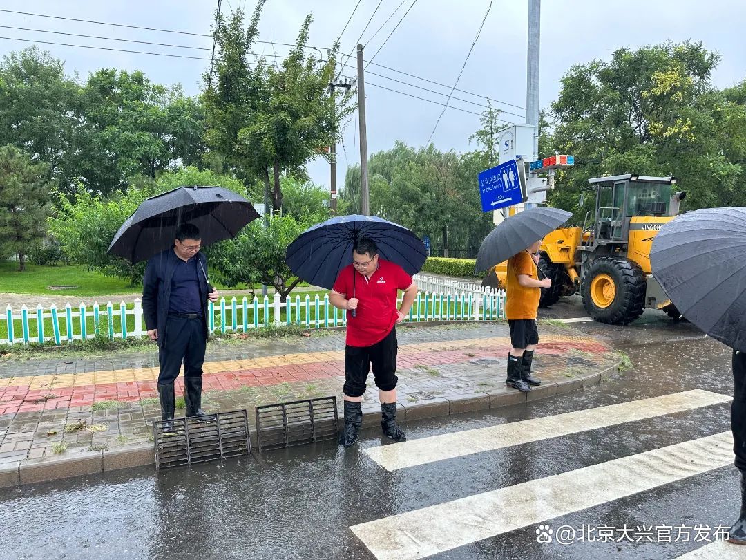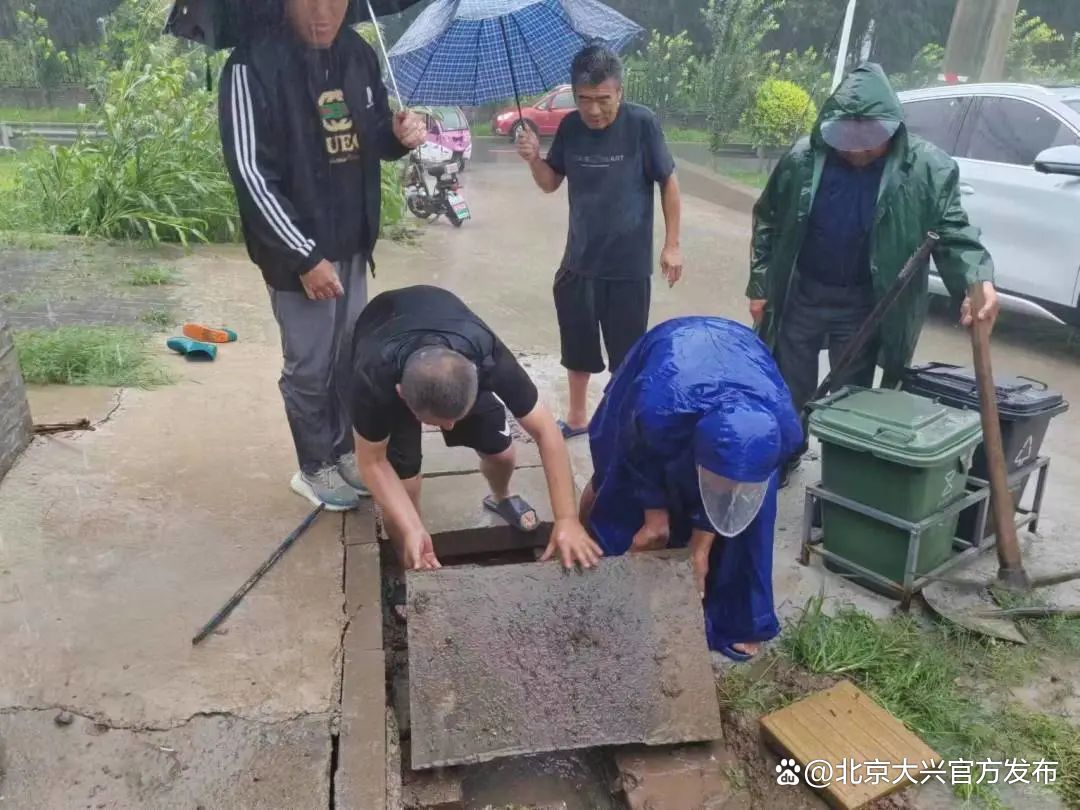 各村党支部安排人员做好值班值守,积极开展隐患排查和安全检查工作,针对老旧房屋、排沟等风险隐患点进行再排查再治理,及时消除安全隐患。巡查中,发现伙达营南侧紧邻黄徐路路段、驴房村委会门前路段、沙河村气站附近路段出现积水情况,经过紧急上报,部门联动及时抽排雨水,未形成内涝风险。御林西苑安排维修值班人员7人,保安15人,及时清理重点位置排水沟,提前准备抽水泵、防汛沙袋等防汛物资,24小时值守保障社区安全。