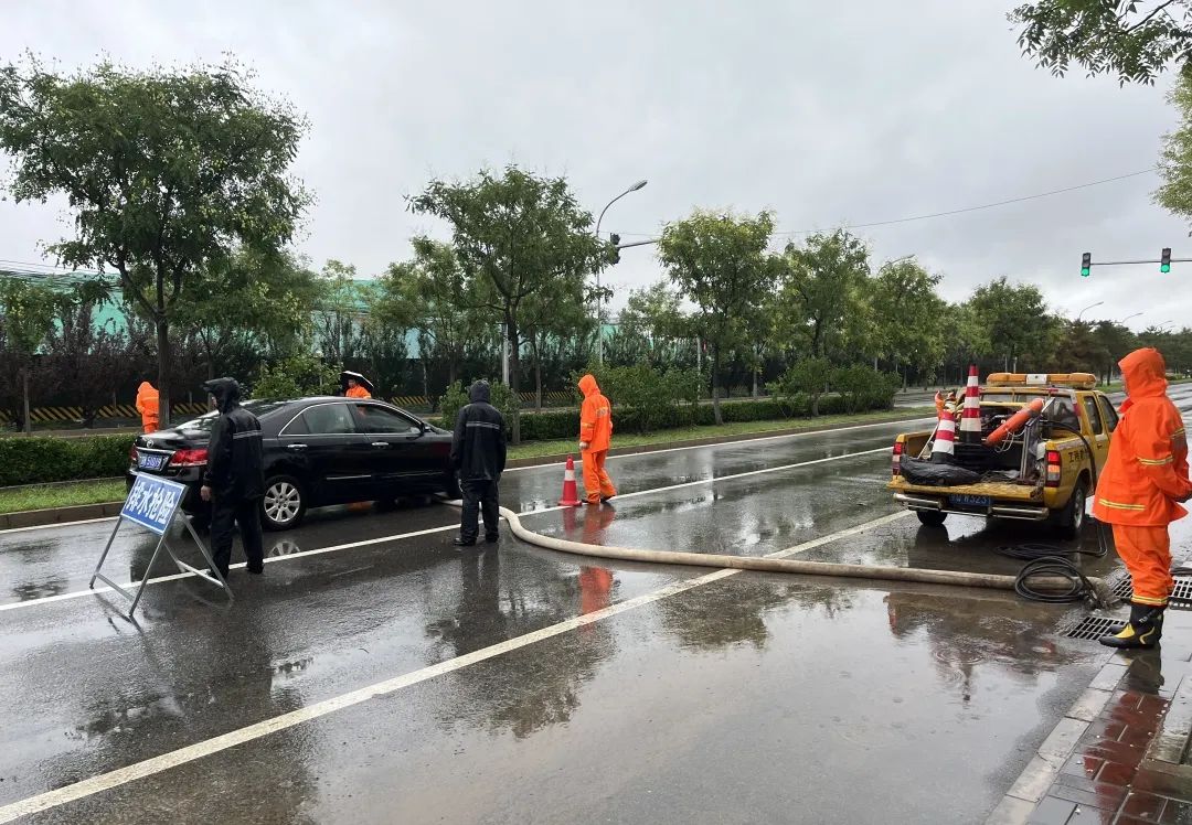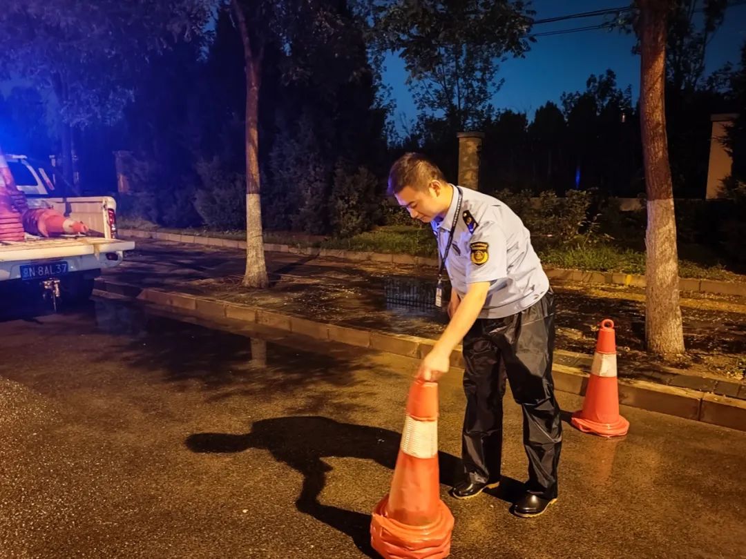 分局党员干部听令而行,吹响应急响应“集结号”,第一时间落实工作要求,奔赴防汛前线,对东高路马各庄段、老姚家园路丽水嘉园南门、厢白旗桥下、荷清路与中关村北大街交叉口等高风险积水点位不间断盯守,及时反馈现场信息,妥善处置汛情险情,确保各风险点位排水泵、救生设备等保障力量准备充足,及时到位,切实把保障人民群众生命财产安全扛在肩上、放在心中。