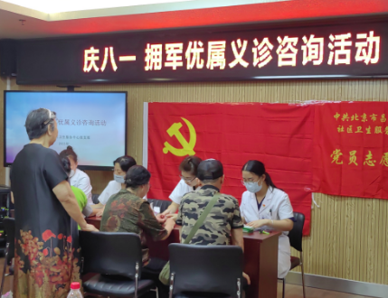 活动开始前,天通苑南社区卫生服务中心医护人员还免费为退伍老兵和家属们测血压、量血糖,并提供了中医把脉、问诊等服务。