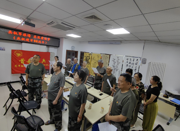 龙泽苑东区召开“共叙军旅情·共筑爱国梦——庆‘八一’座谈会”。在“人民军队忠于党”的歌声里、在饱含敬意的诗歌朗诵中,大家回味军旅生涯,畅想美好未来。