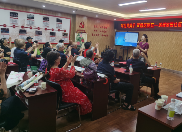天通苑南街道顶秀青溪家园社区还开展了学党史迎“八一”的活动。老兵们和社区军属及孩子们一同唱军歌,嘹亮的歌声让在场老兵激情满怀,重拾激情燃烧的军旅岁月。随后,大家围坐在老兵周围,听老兵们讲抗美援朝的战地故事。老兵们的谆谆教诲,在大家心中种下坚毅奋斗的种子,并慢慢生根发芽。