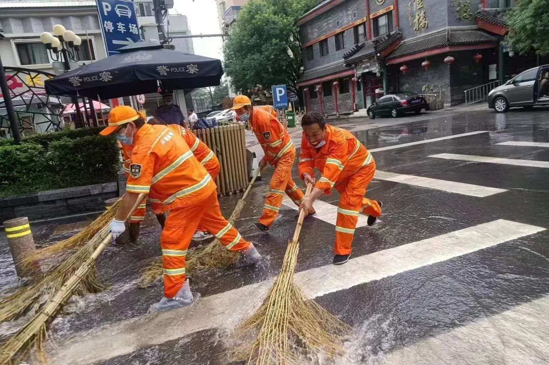 弯腰、捡拾、清扫……风雨中,环雅丽都公司环卫职工穿梭在各路段进行巡查,并对辖区内各易积水点位开展推水作业,一旦发现排水口周边有杂物堵塞,他们便弯下腰,清理和疏通路面积水、杂物。环雅丽都公司压紧压实责任,全力保障路面环境卫生及通行秩序,提前检查防汛物资和检修相关车辆设备,部署责任区内易积水点位的抢险力量和物资设备,严格执行值班制度,加强防汛安全检查和隐患排查。加强预案精细化管理,对防汛重点部位、防汛风险点、防汛突发事件加强覆盖,全力做好各类防汛突发事件应对。